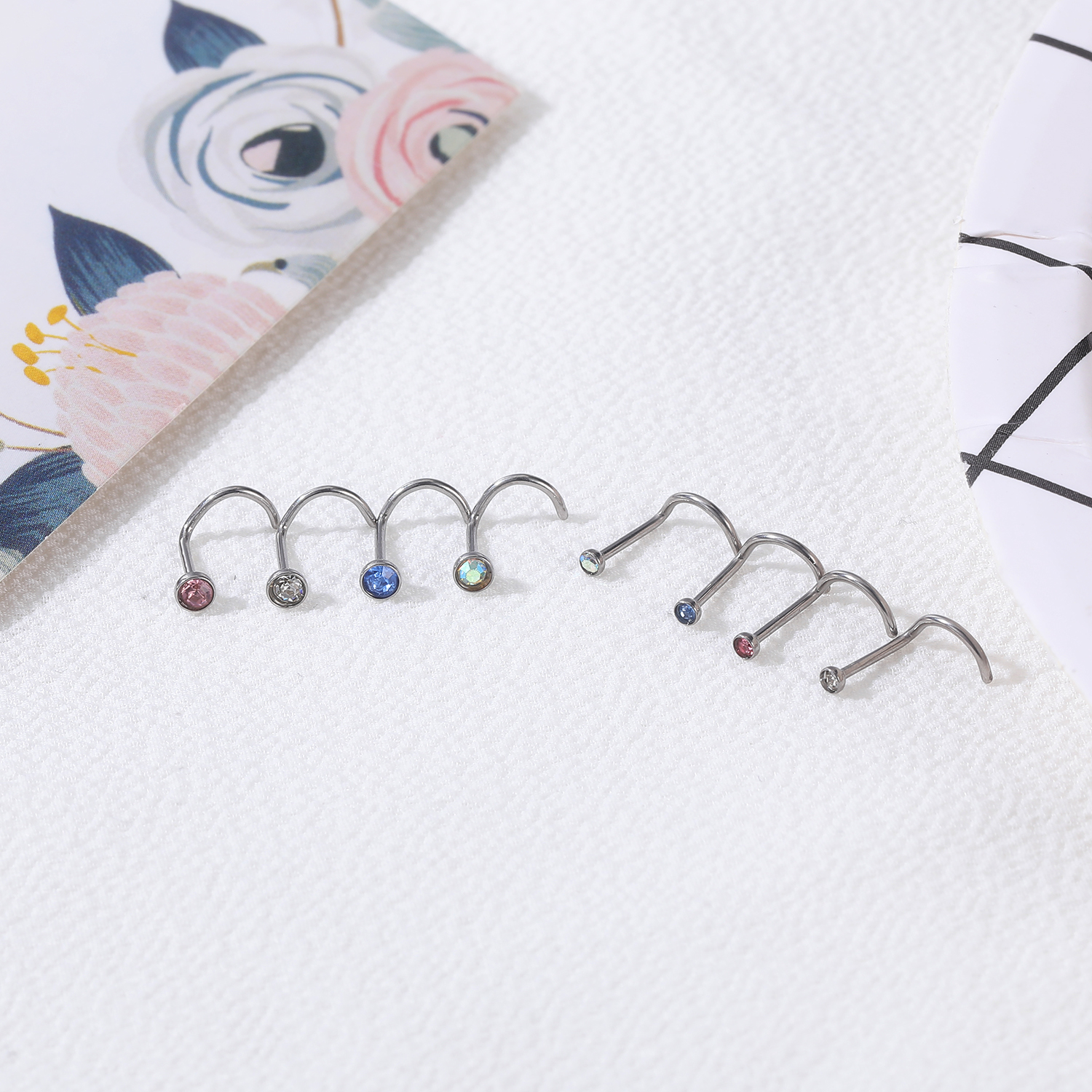 Material: G23 Titanium & Cubic Zircon. Shiny and Bright, Highly Polished, Smooth Surface, Healthy, Rust-Resistant & Hypoallergenic, Suitable for Sensitive Body. Nose Stdus easy to Put on and Take off.