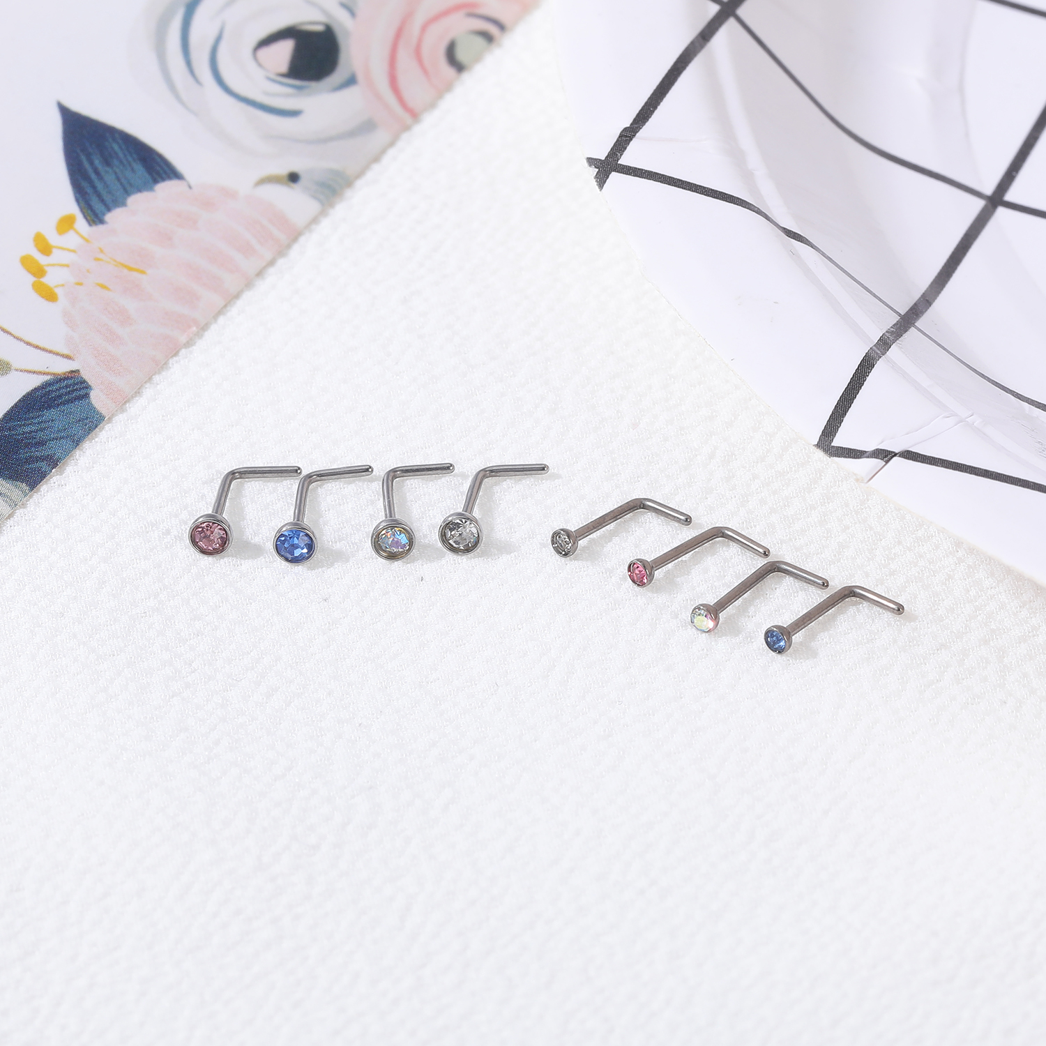 20G CZ Nose Rings Studs Stainless Steel L Shaped Nose Stud Dangle Nose Piercing
