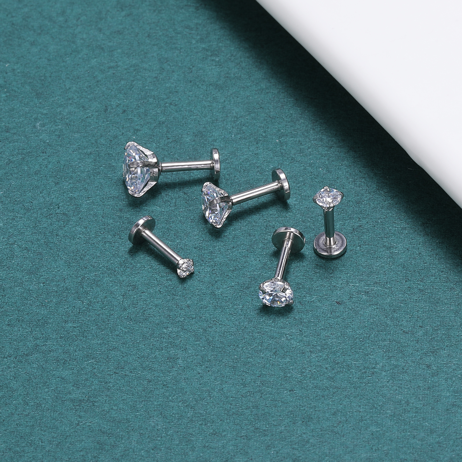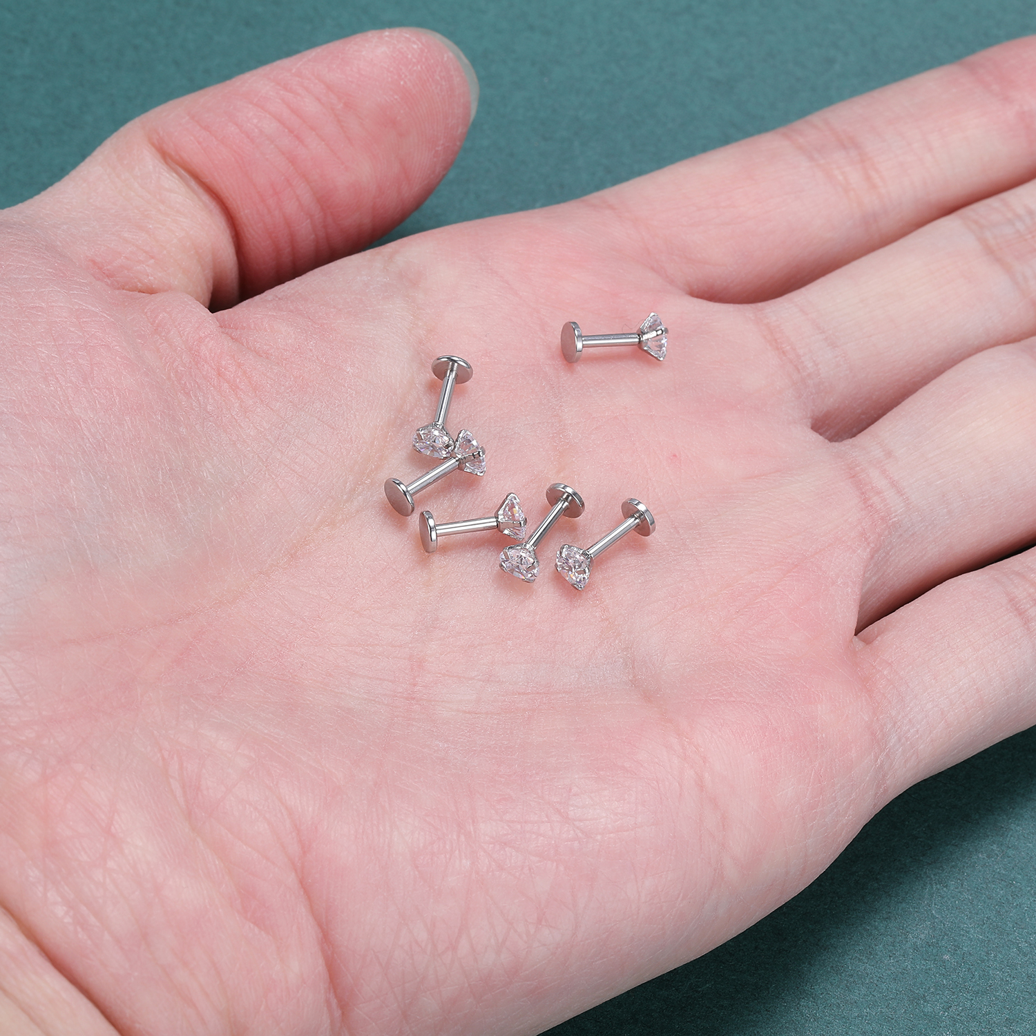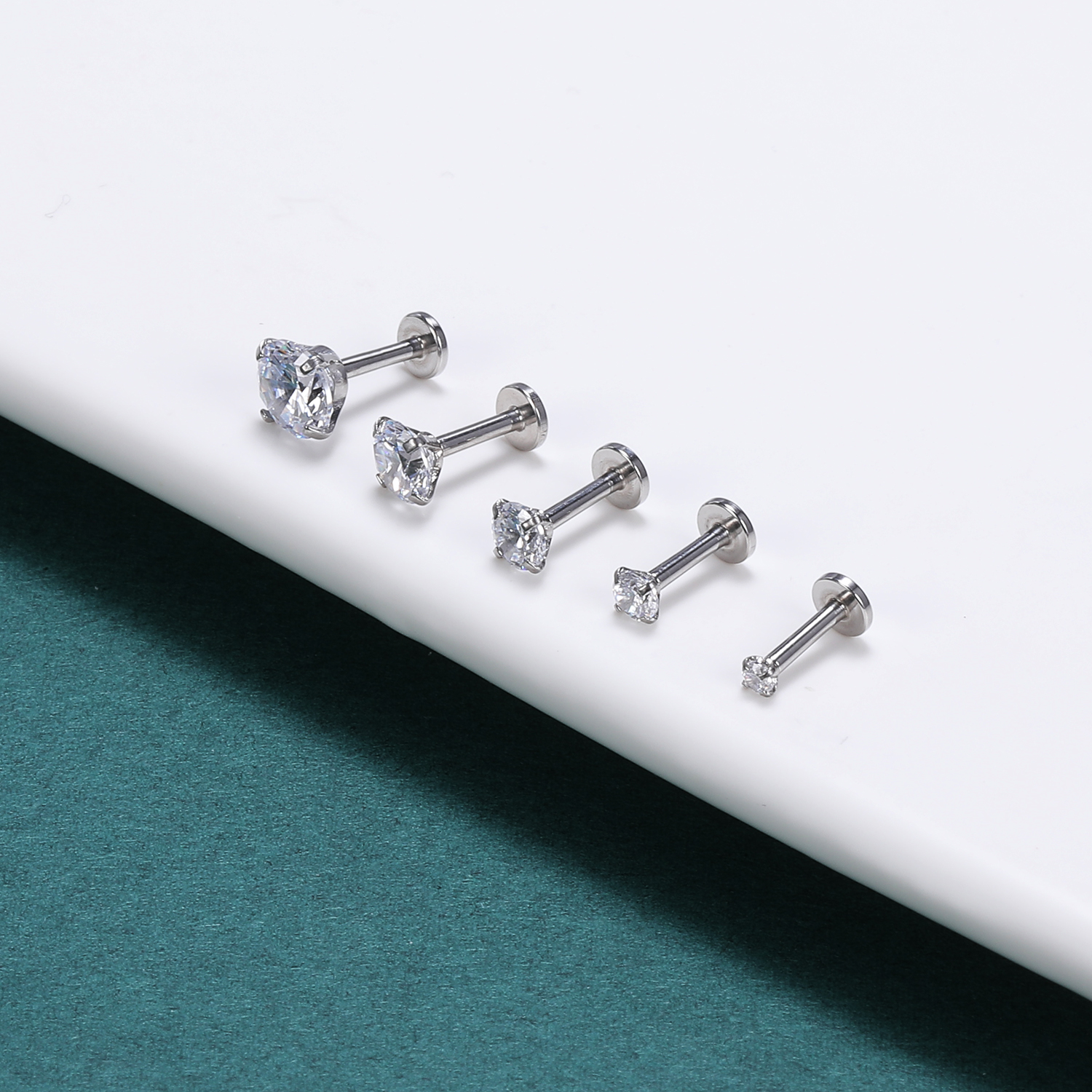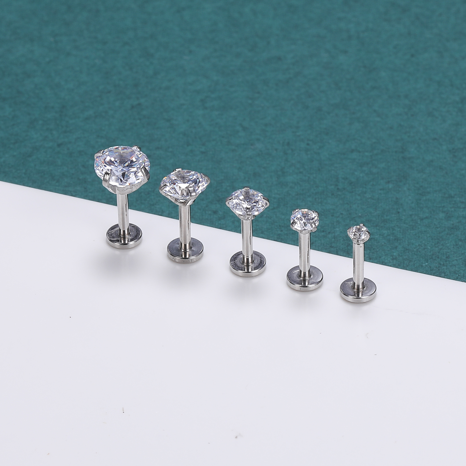10Pcs Plug-in Style Stainless Steel 16G Lip Labret Piercing CZ Tragus Piercings