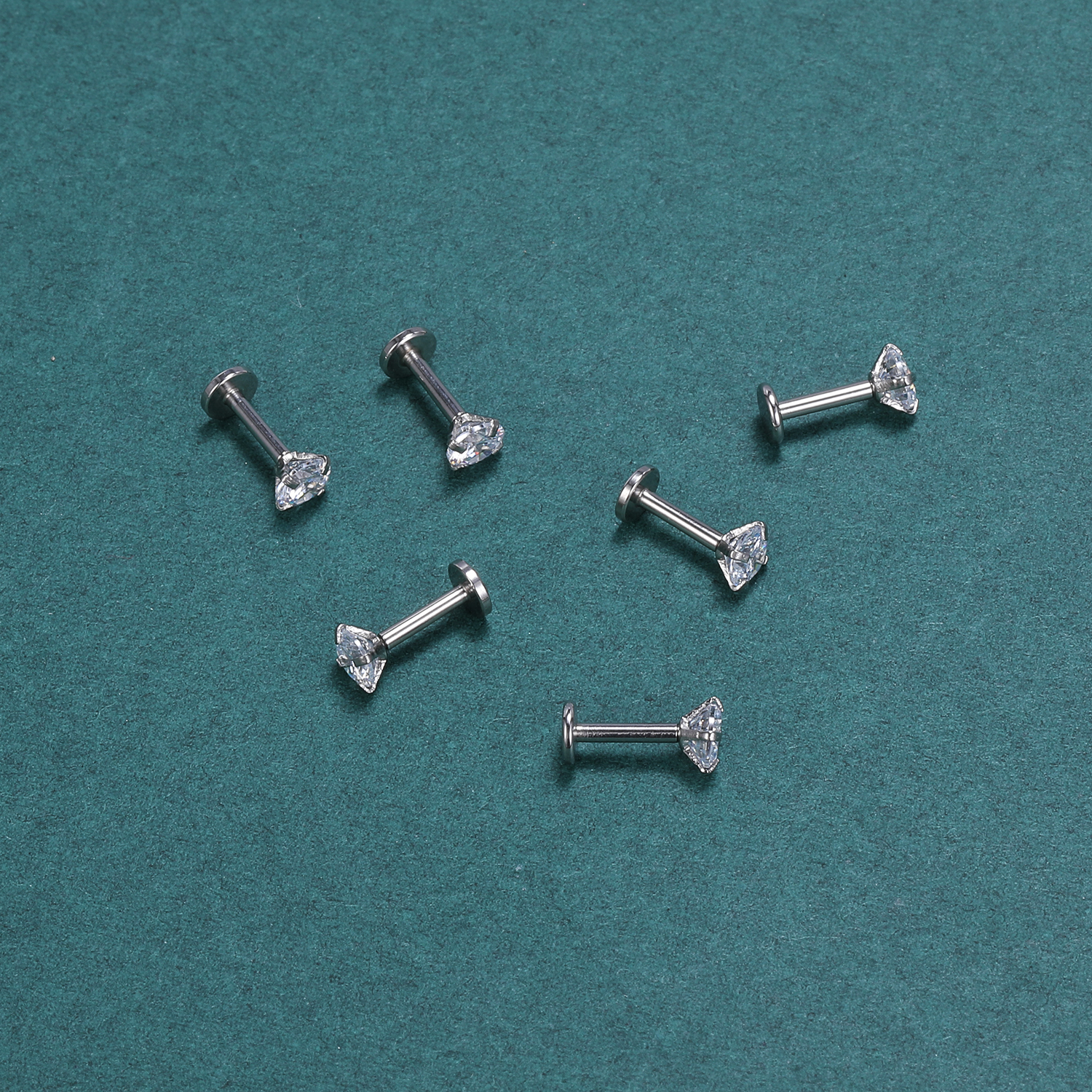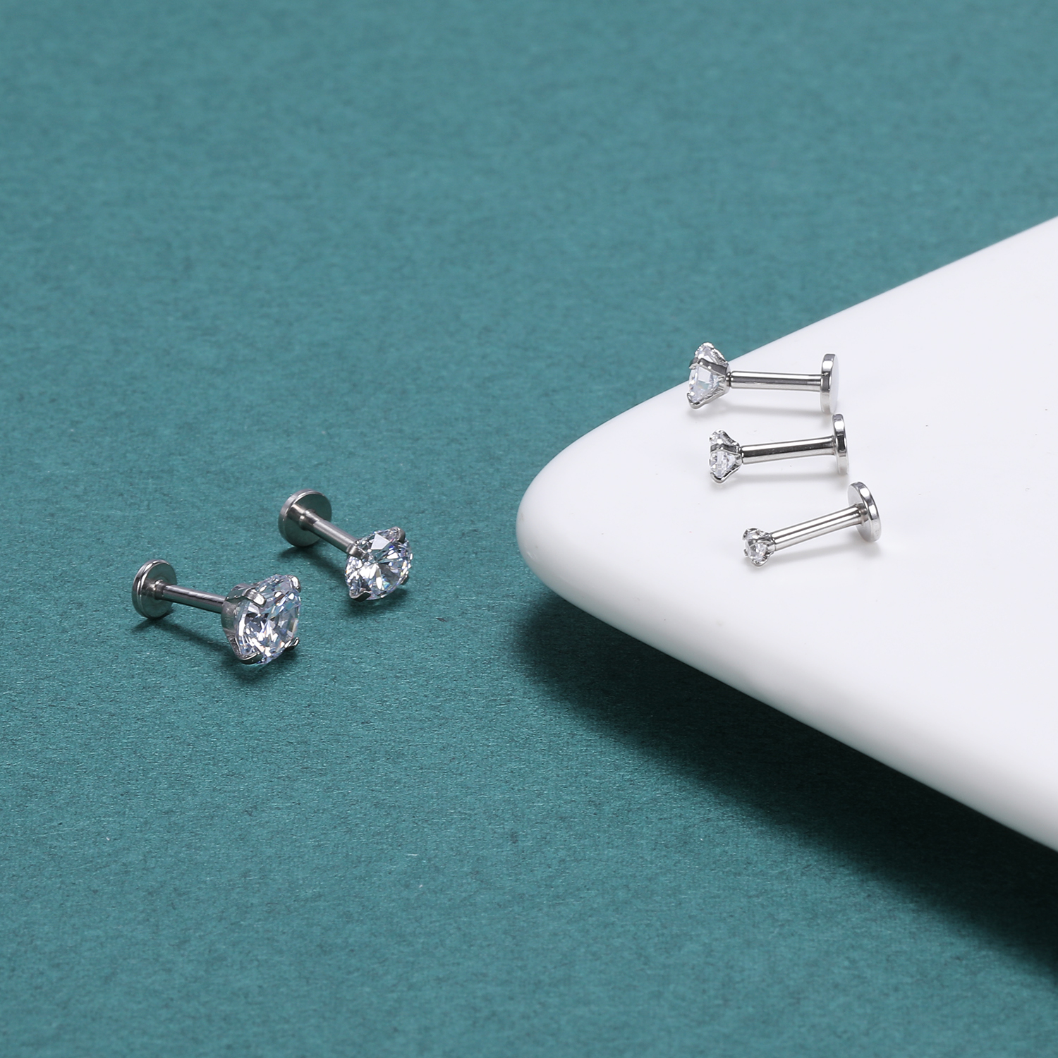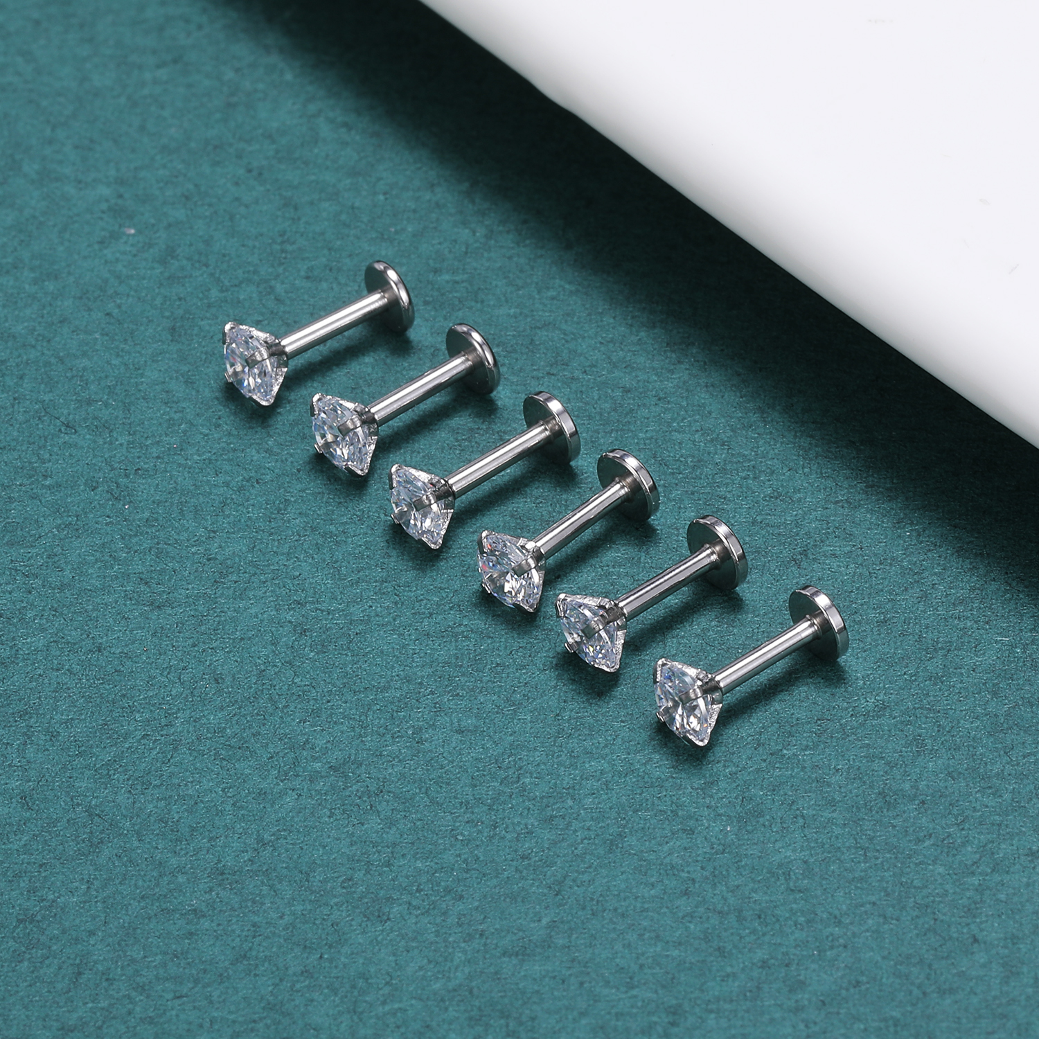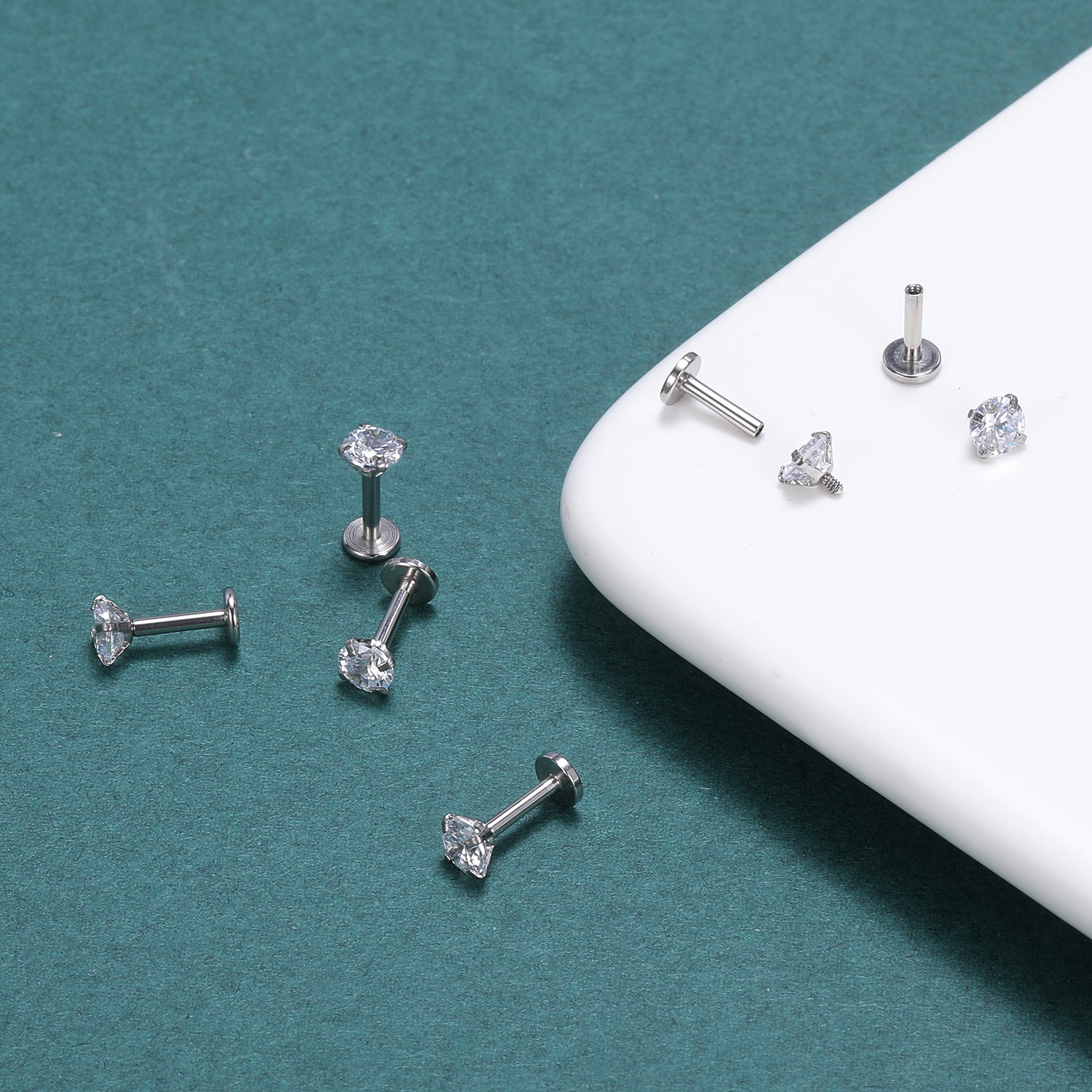 10Pcs Plug-in Style Stainless Steel 16G Lip Labret Piercing CZ Tragus Piercings