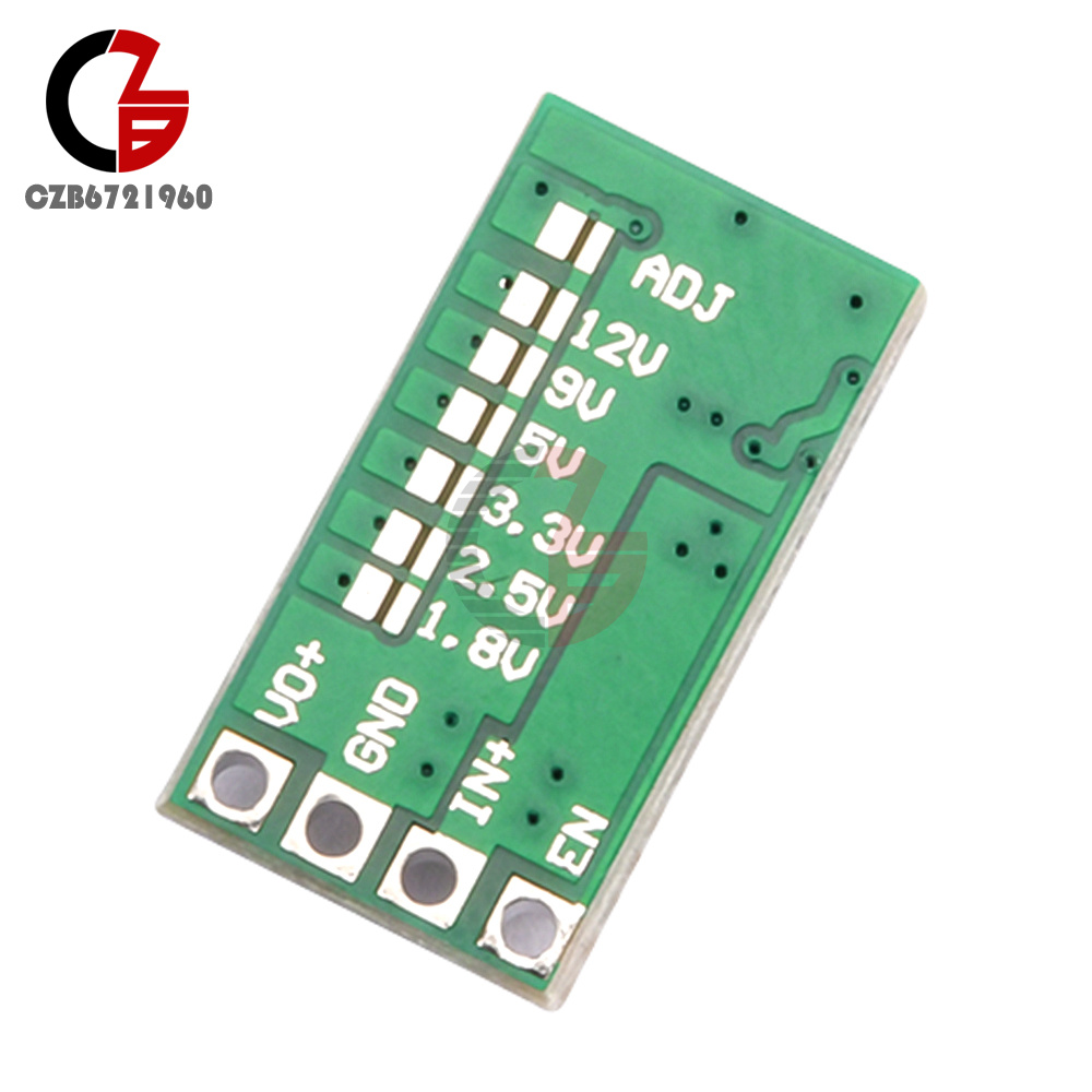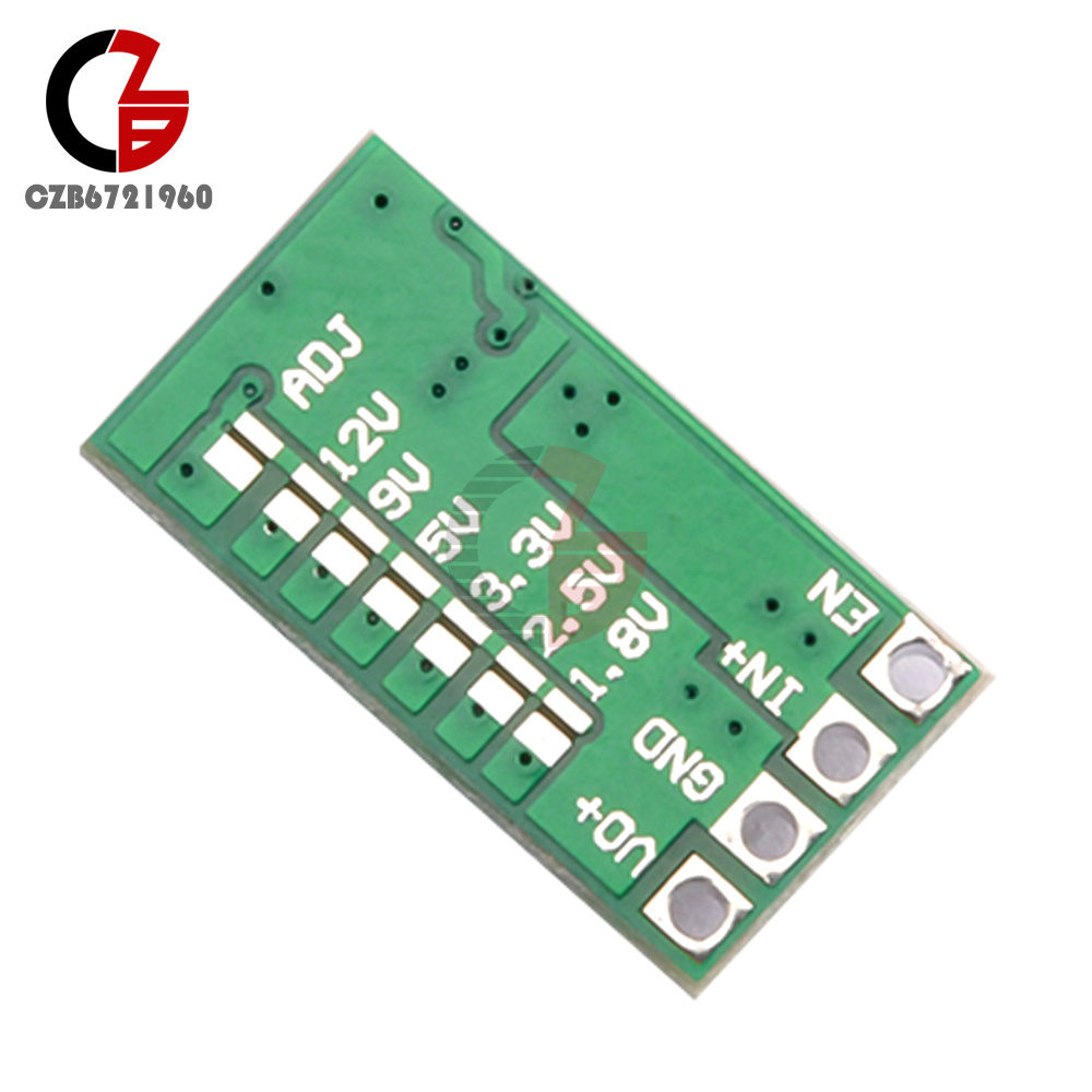 1.Input Voltage:DC 4.5-24V2.Output Voltage:integration adjustable and fixed output,back side can choose fiexd output voltage3.Adjustable Range:0.8-17V,fixed voltage (1.8V 2.5V 3.3V 5V 9V 12V)4.Output Current:3A (max),actual testing input 12V output 1.5A5.Transform Efficiency:97.5%(max) (6.5 to 5V 0.7A)6.Switch Frequency:500KHz7.Output Ripple Wave:20mV (12V to 5V 3A) 20m band width8.Operating Voltage:-40 Celsius-85 Celsius9.Output Overvoltage Protection:no10.Static Current:0.85MA11.Load Adjust Rate:±1%12.Voltage Adjust Rate:±0.5%13.Dynamic Response Speed:5% 200uS14.Output Short Circuit Protection:yes15.Input Transposition Protection:no16.Enable Control:yes17.Connecting Type:soldering18.Input Way:soldering19.Output Way:soldering/pin20.Soldering Hole Space:2.54mm