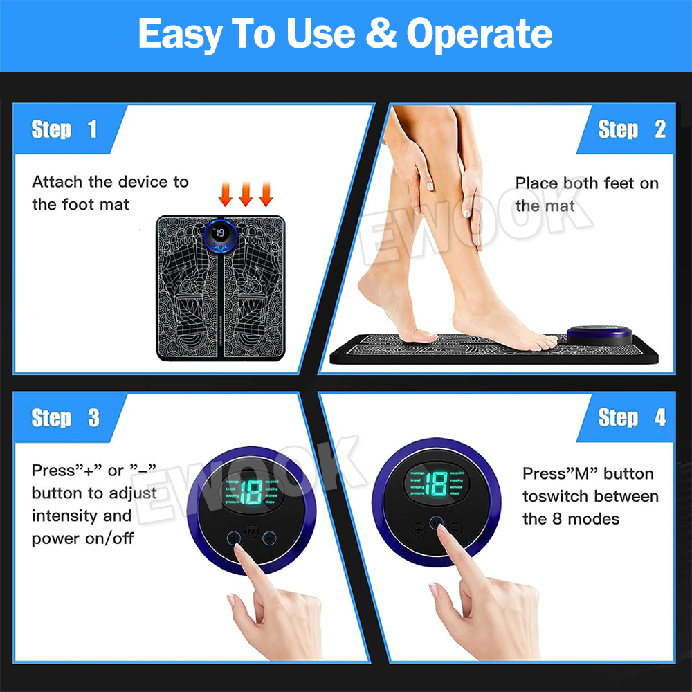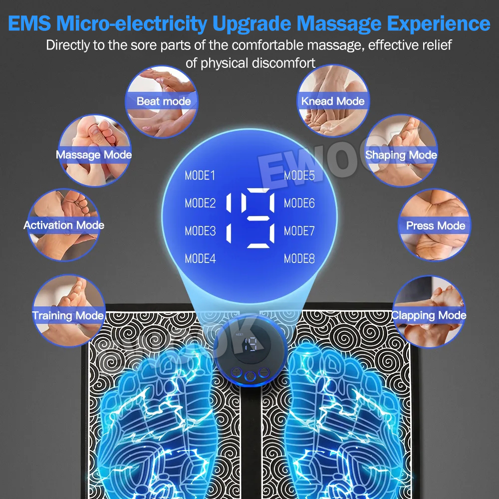 - Foot Massage Mat 8 Modes Electric Feet Massage USB Rechargeable Foot Massager Remote Control for Home and Office Use