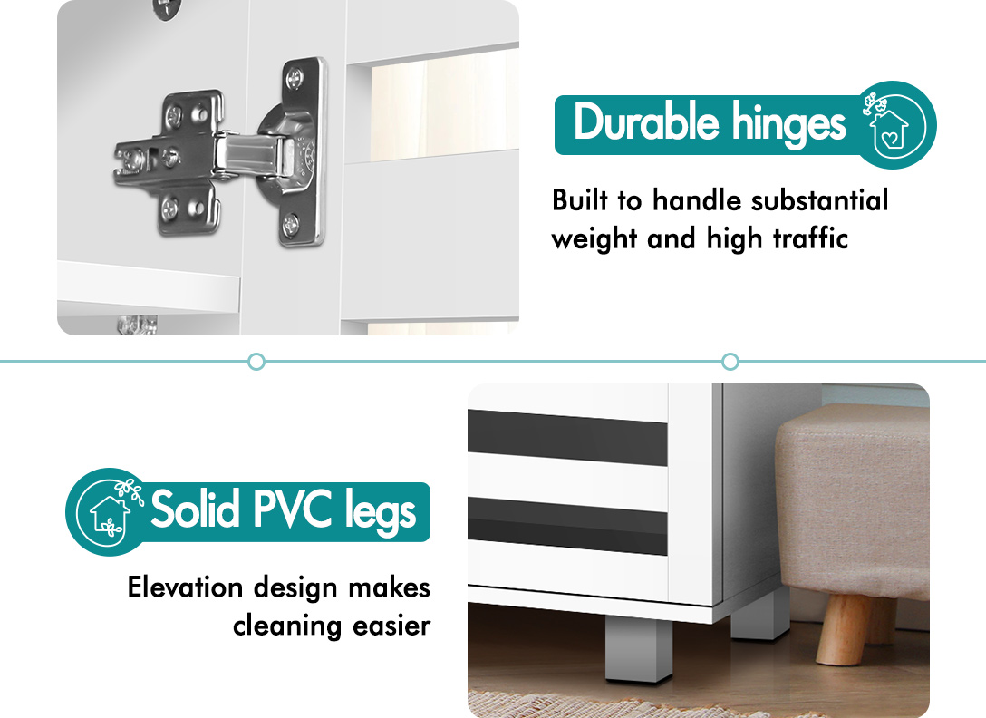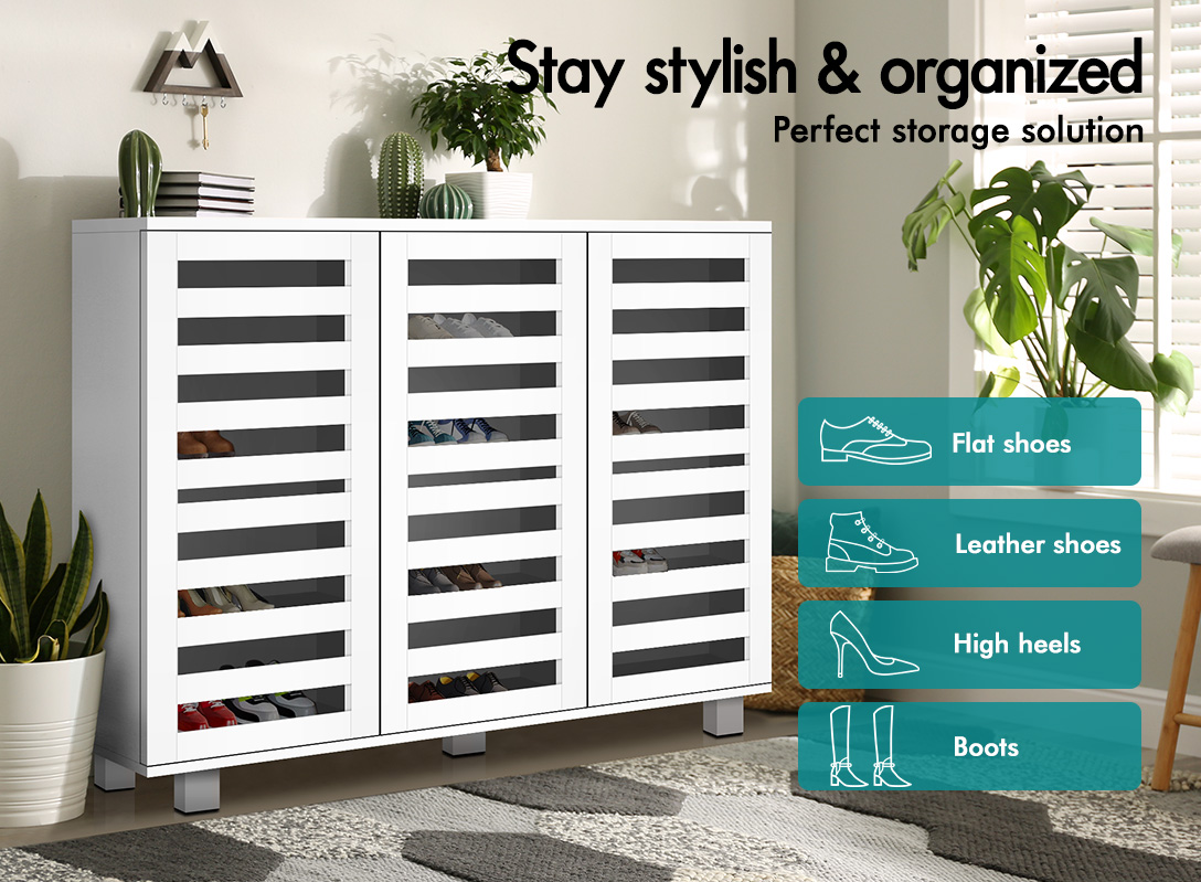 Boots in the entryway? Flats and sneakers in four different rooms? Shoes are placed in clutters? It's time to keep your shoes organized with an ALFORDSON® shoe storage cabinet. Featuring a clean-lined silhouette design, this shoe cabinet is easy to coordinate with any style of decor.