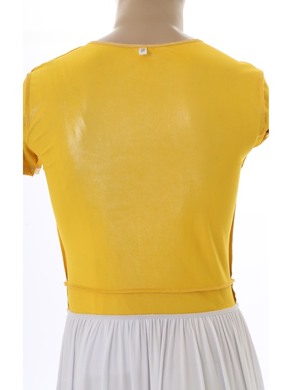 Men’s ancient Geek tunic is designed with short sleeve, chiffon layer from front to right shoulder, metallic shiny upper body.