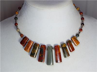 CYNTHIA LYNN "FALL PALETTE" RED GREEN GOLD PICASSO JASPER SILVER PLATED BIB CHOKER NECKLACE 12-15 inches