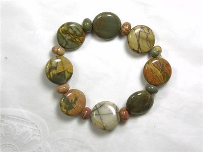 Photo is an example. All jasper bib necklaces are similar but vary as they are natural stones.