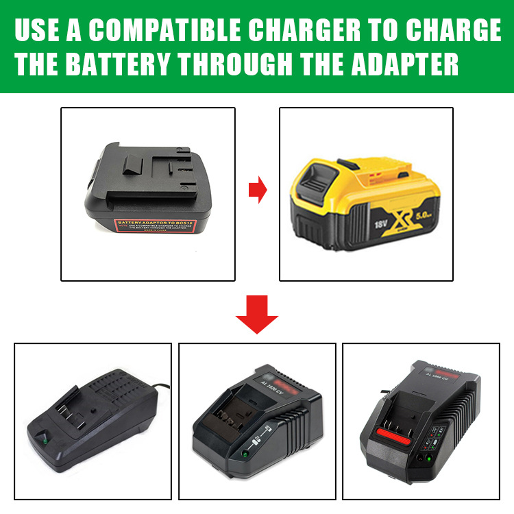 Convert for Dewalt 18V/20V lithium battery to for Bosch 18V lithium battery tool. With this converter, you can use for Dewalt 18V/20V lithium battery on for Bosch 18V lithium battery tool. Share for Dewalt 18V/20V lithium battery with for Bosch 18V Lithium Battery tool.