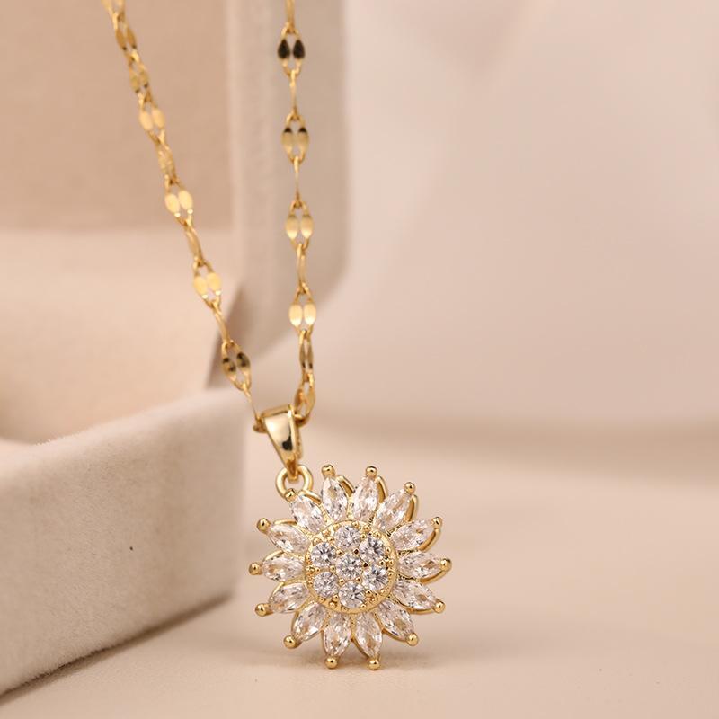 Whether you wear it as a daily accessory or save it for special occasions, our Double-Layer Stainless Steel Rotatable Sunflower Chain Necklace is designed to evoke admiration and inspire confidence!
