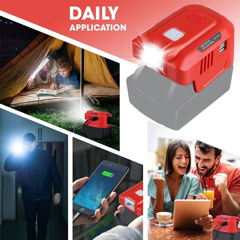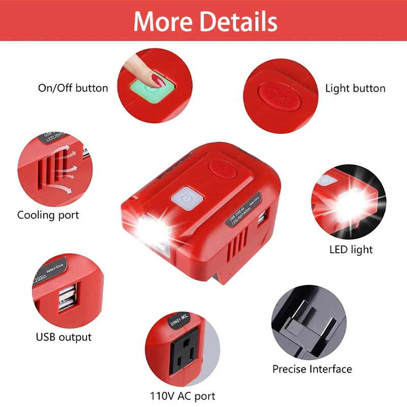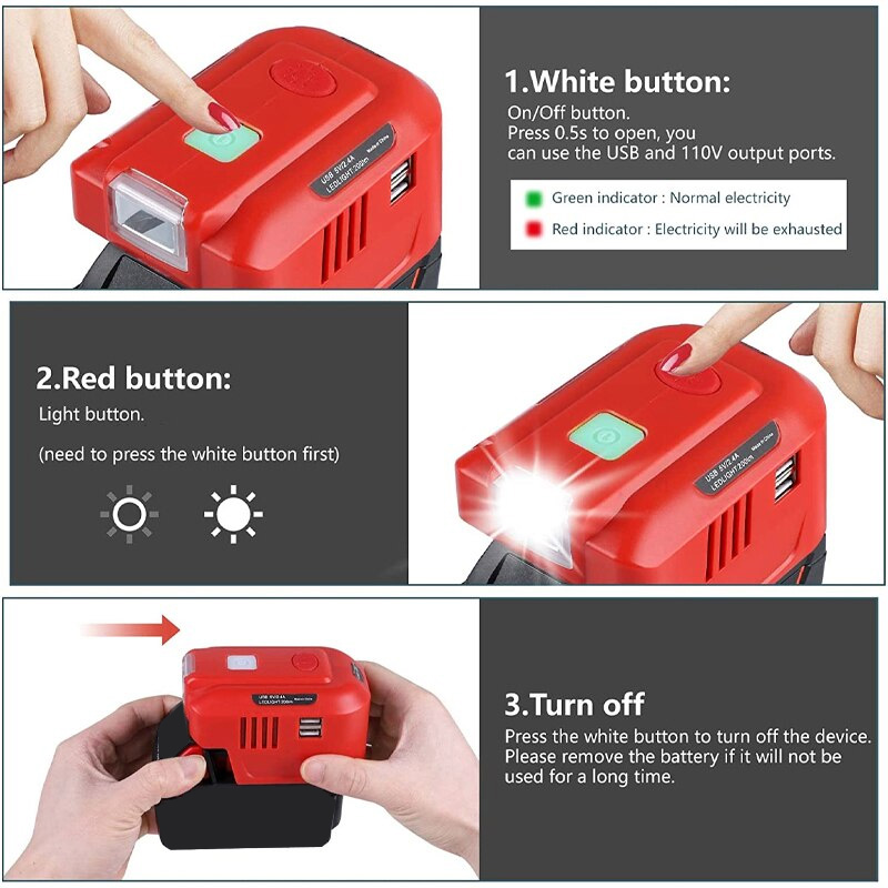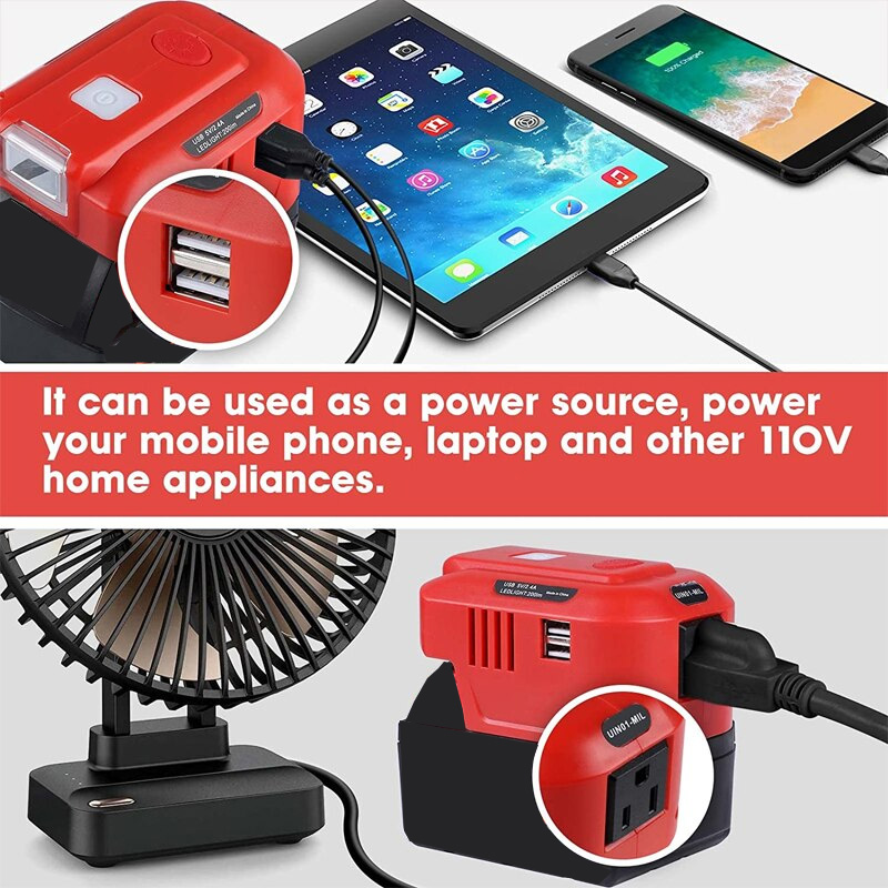 150W Power Supply Inverter Adapter with LED Light for Milwaukee 18V Lithium Battery Portable Generator 18V DC To AC 110V/220V