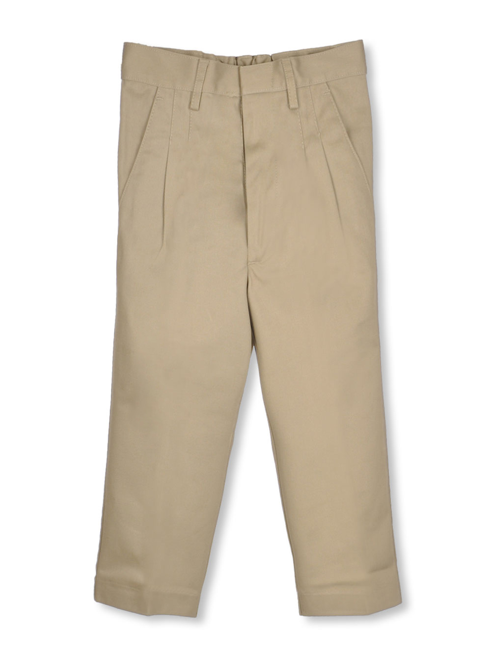 For quality schoolwear basics, rely on Universal. These pleated pants feature an elastic waistband, faux fly, welt pockets in back, and reinforced knees. Made to withstand wash and wear, these pants will look great for years to come. 60% Cotton, 40% Polyester Machine Wash Cold Imported