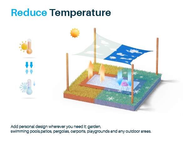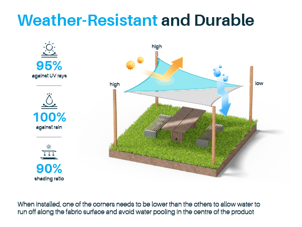 - 95% Sun Block : Made of 100% brand new high-density polyester, blocking up to 95% of the UV rays. Lower the temperature under the shade canopy, reducing your property's cooling cost and energy consumption