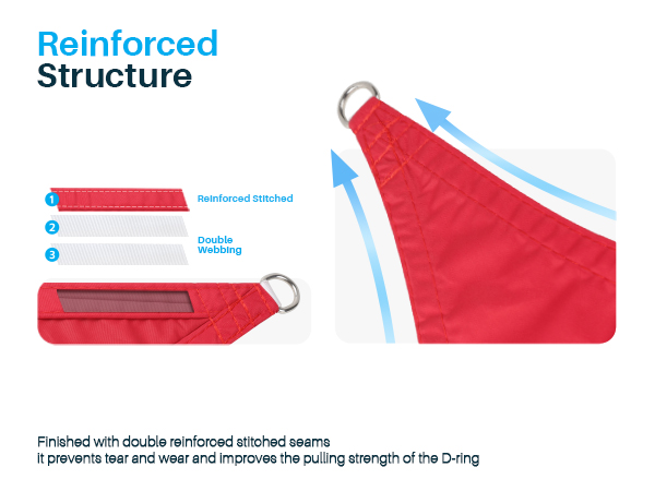 - Reinforced Structure: Finished with double reinforced stitched seams, it prevents tear and wear and improves the pulling strength of the D-ring. Not easily deformed or faded, the heavy duty shade clothes will not leave white creases after folding, maintaining their beauty.