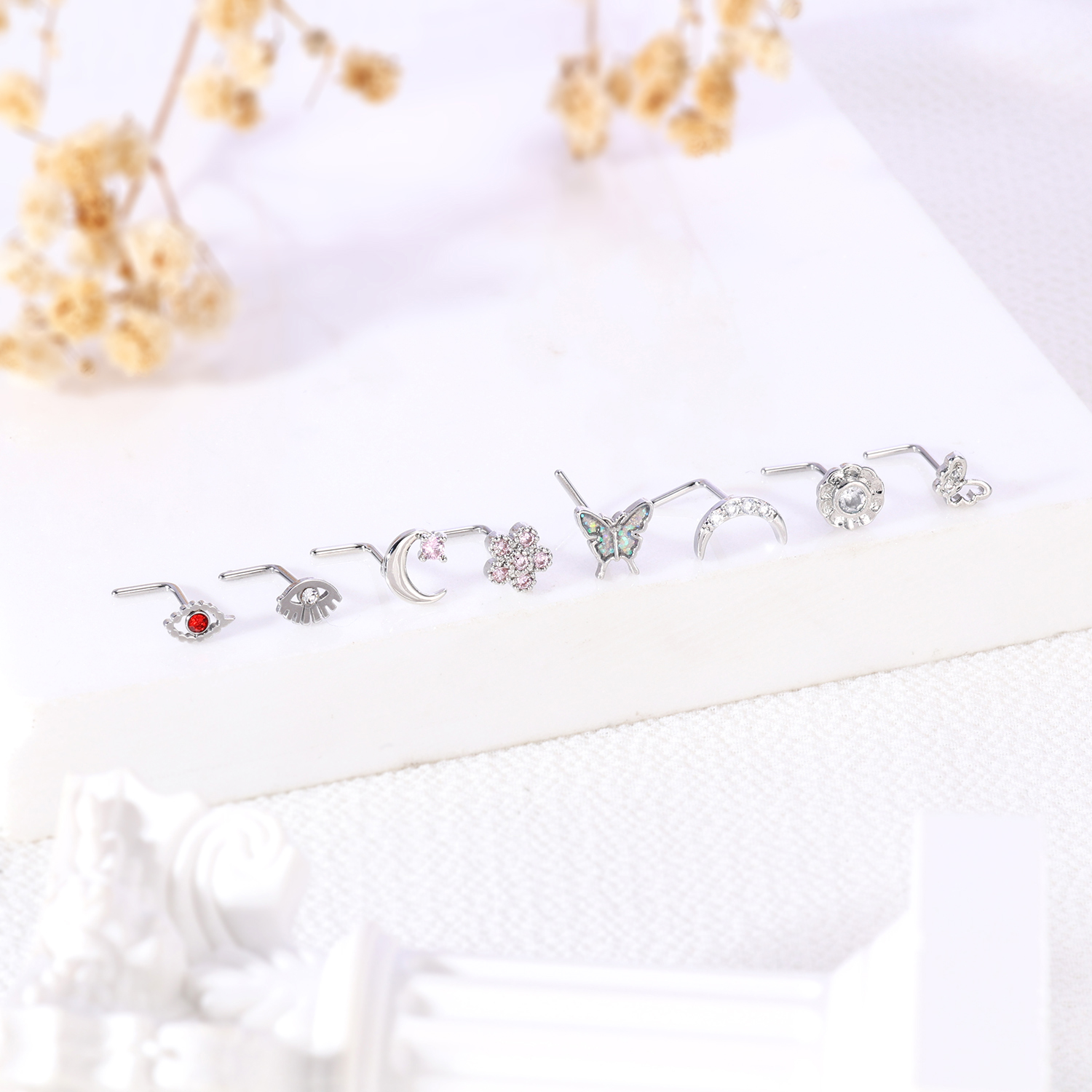 20G CZ Nose Rings Studs Stainless Steel L Shaped Nose Stud Dangle Nose Piercing