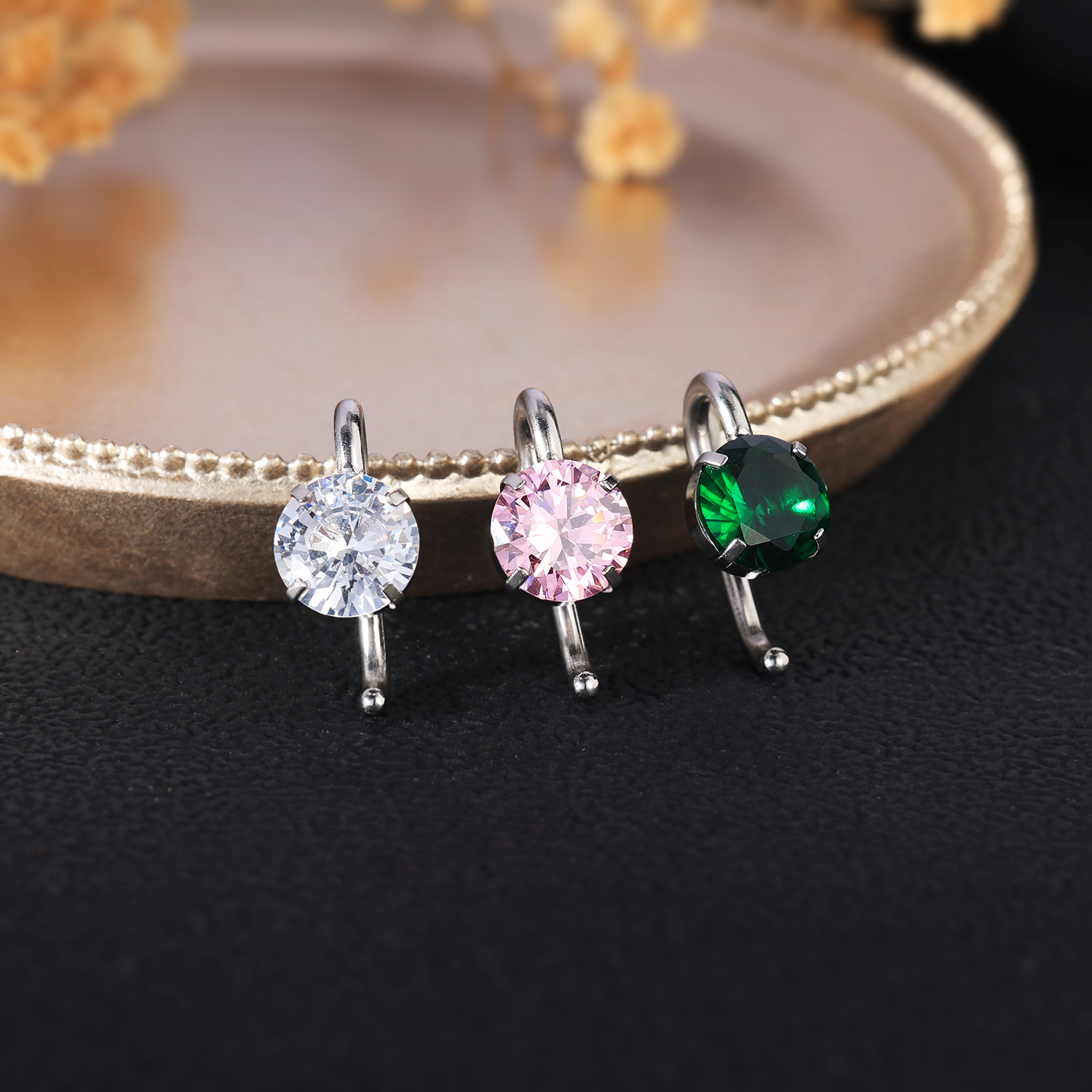 16G Opal CZ Nose Hoop Ring Stainless Steel Helix Earrings Septum Nose Piercing