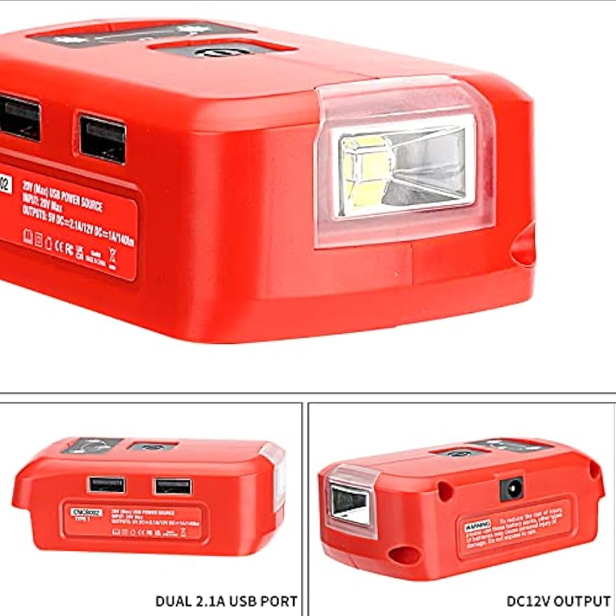 About this item 【Perfectly Compatible with Black and Decker 14.4V-20V Lithium-Ion Batteries】powered by For Craftsman 20v lithium-Ion battery CMCB204, CMCB202, CMCB201, CMCB205, CMCB206,CMCB209 cordless tools battery etc. 【Dual Port Power Bank】- The work light can also serve as a power bank for smartphones or mobile devices in emergency. Equipped with 5V/2.1A dual rechargeable charging port for quick and convenient charging. In addition, it is equipped with a DC12V output port, which can supply power to the m 12 heated jacket. 【3 Light Modes】-Equipped with 140lm LED work light. Simply press the switch of the lamp to adjust from Low light, High light to flash mode. While long press, it can close the light. 【Reliable Security】-Built-in smart chip, multiple charging protection can protect your device from overcurrent, overvoltage and short circuit. Thorough protection during charging.