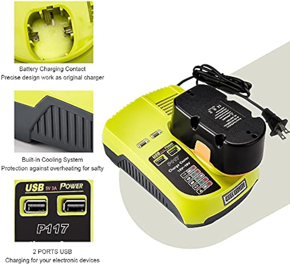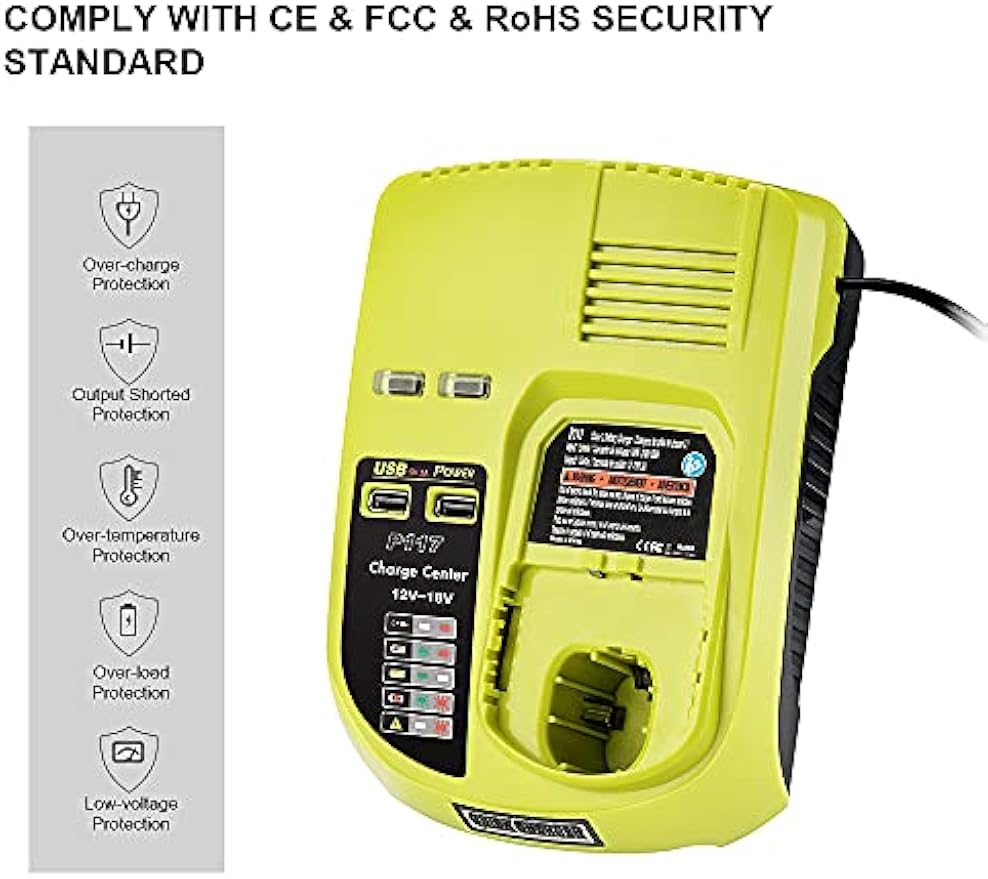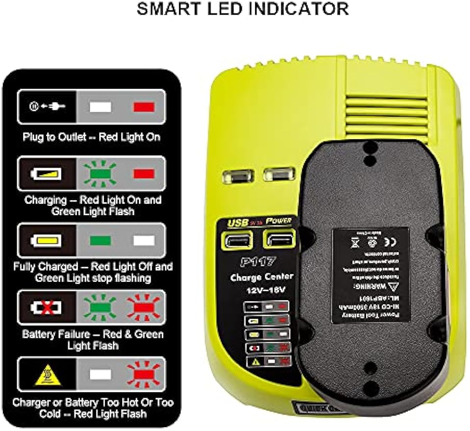 ⭐【 LED INDICATOR TO MONITOR 】 —— P117 Battery Charger for Ryobi with indicator lights to show the battery status. Built-in charger diagnostic program checks batteries with every charge to optimizes the battery life and performance.