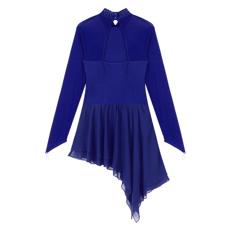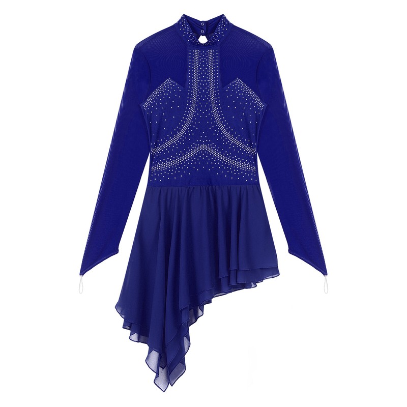 Dance dress for women, sheer mesh patchwork design, embellished with rhinestones, sparkle under the light to brighten up any performance.