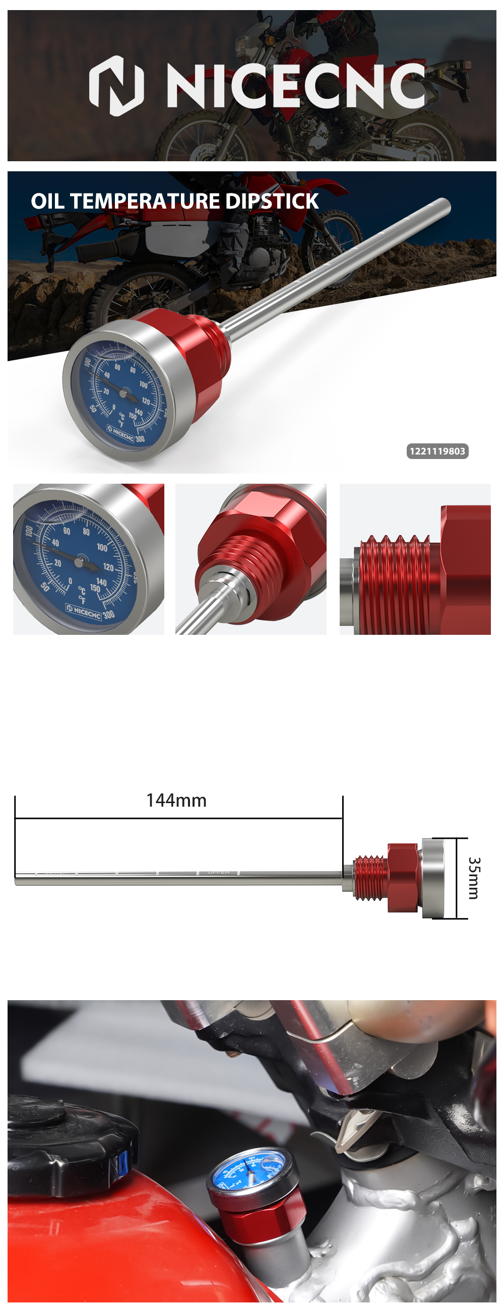 NICECNC Oil Temperature Thermometer Dipstick
