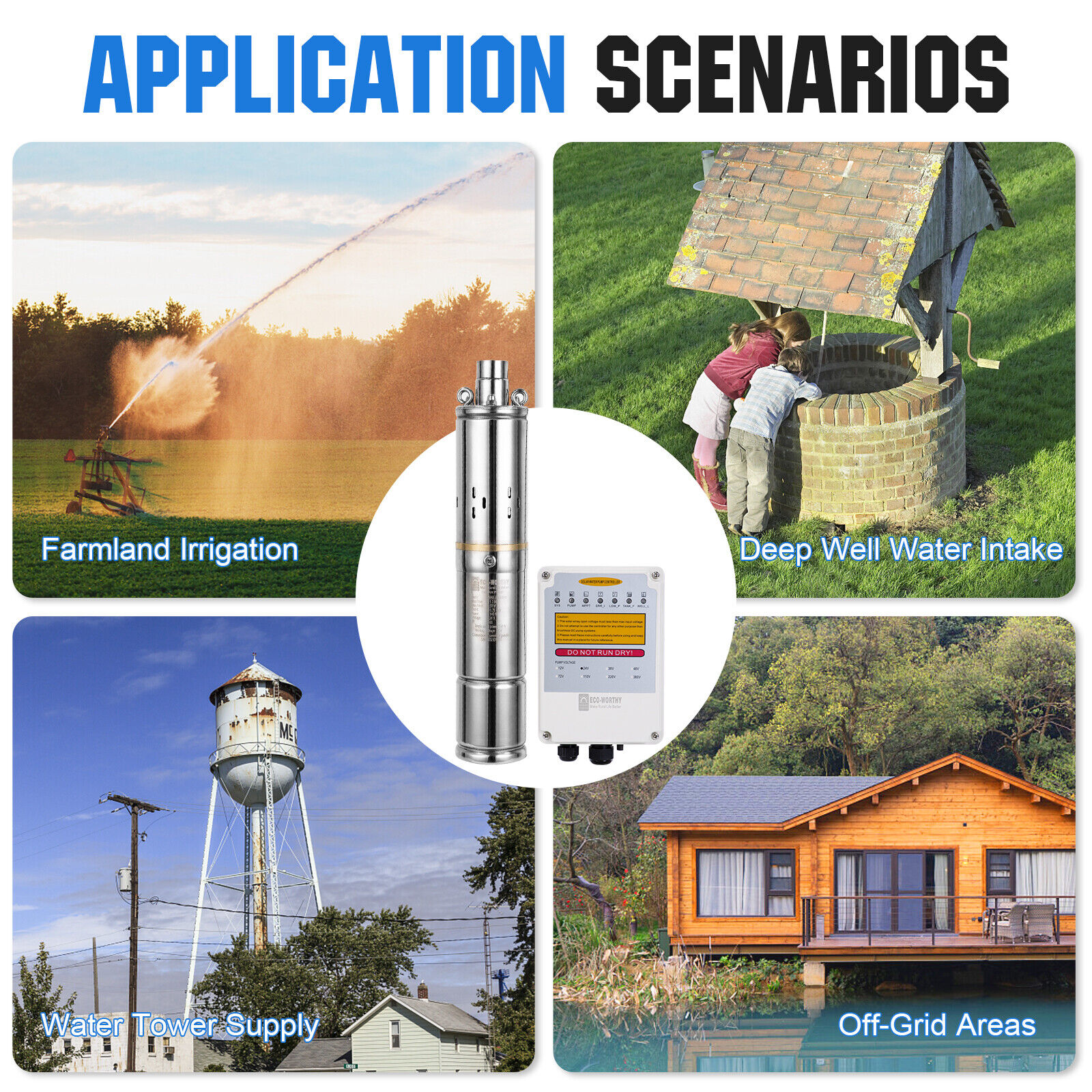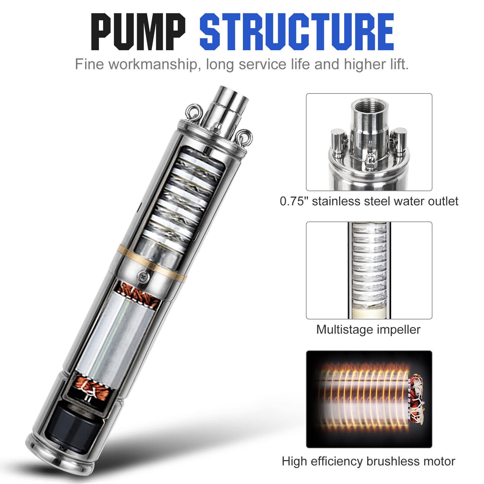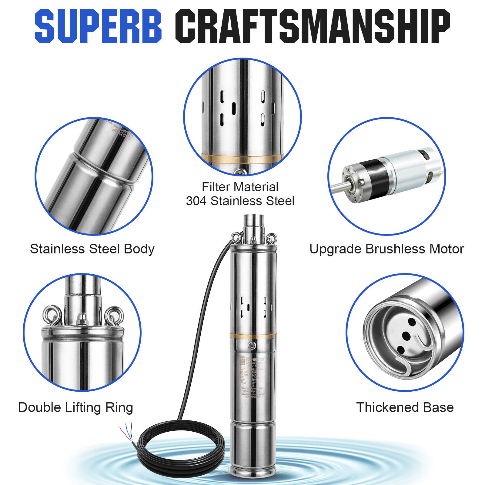 - Compact structure, high-lift, noiseless, non-pollution, complete electrical protecting controller device.