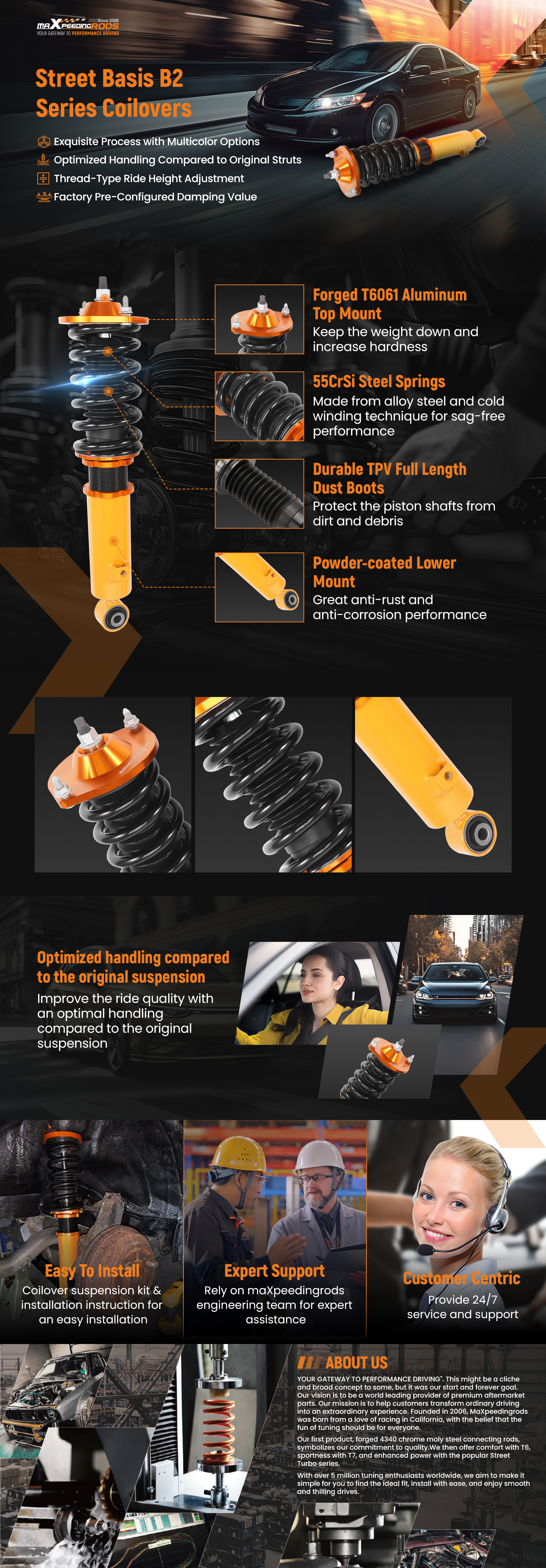 1.Réglage de la hauteur abaissé (selon les modèles de véhicules) pour un centre de gravité plus bas et une posture plus agressive.
