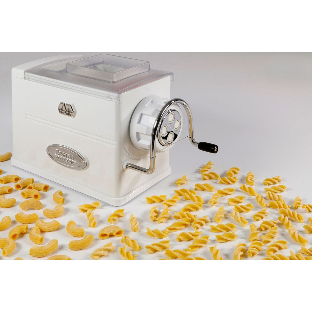 • The Atlas Regina Pasta & Macaroni Pasta Machine by Marcato is the ultimate compact manual pasta making machine, making five different types of pasta in the comfort of your home kitchen