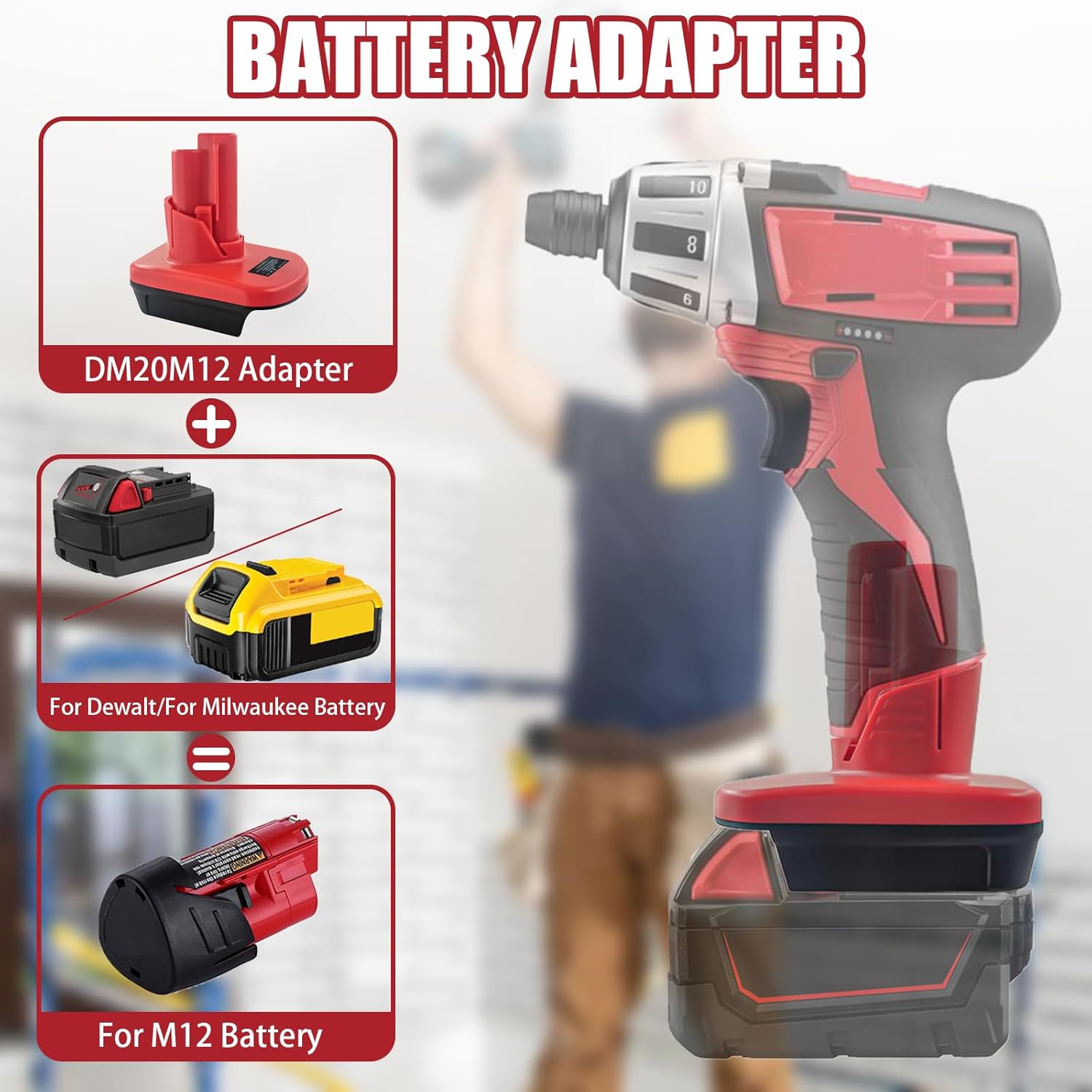 👉【Product Advantages-Function】:This adapter can make listed for Dewalt 20V MAX battery lithium batteries,and for Milwaukee 18V lithium ion battery use for Milwaukee 12V lithium cordless power tools,and let you enjoy the benefits of extended run-time of li-Ion batteries on your existing 12V tools(Note:Adapter only,no battery).