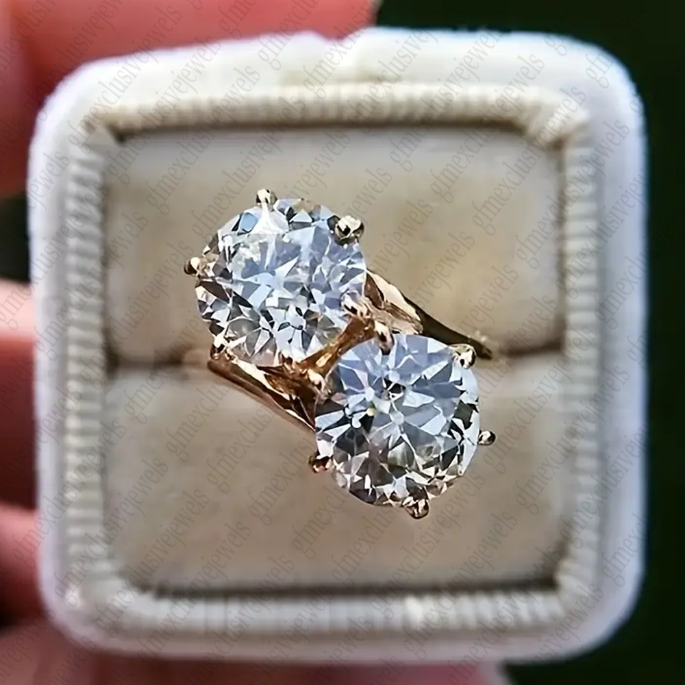 2.28Ctw Round Cut Moissanite Toi et Moi Engagement Ring In Solid 14K Yellow Gold