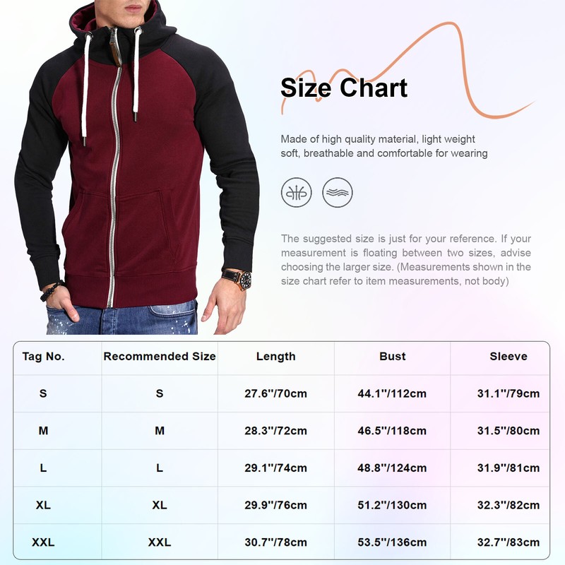 Men’s long sleeve zipper hoodie is made with soft and breathable material that makes you feeling well.
