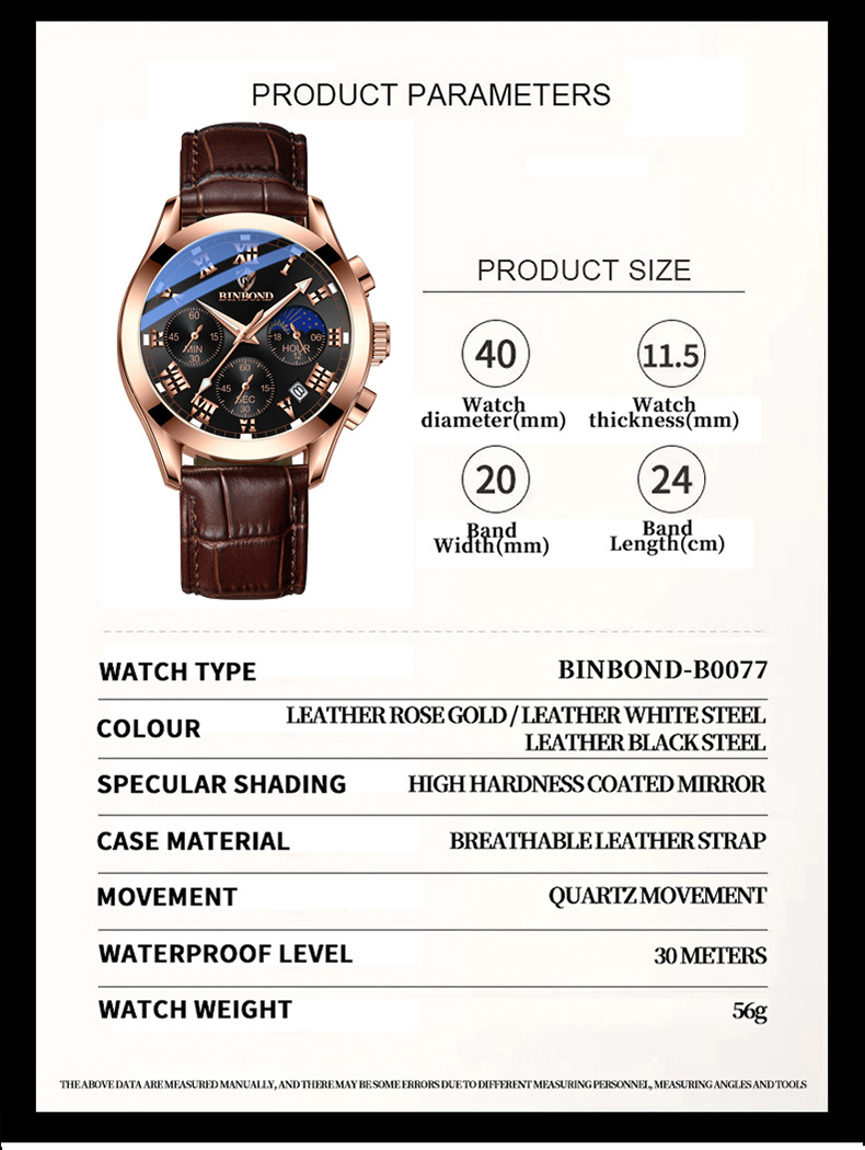 BINBOND Wristwatch Top Watch Fashion Mens Watches Steel Full Top Watch