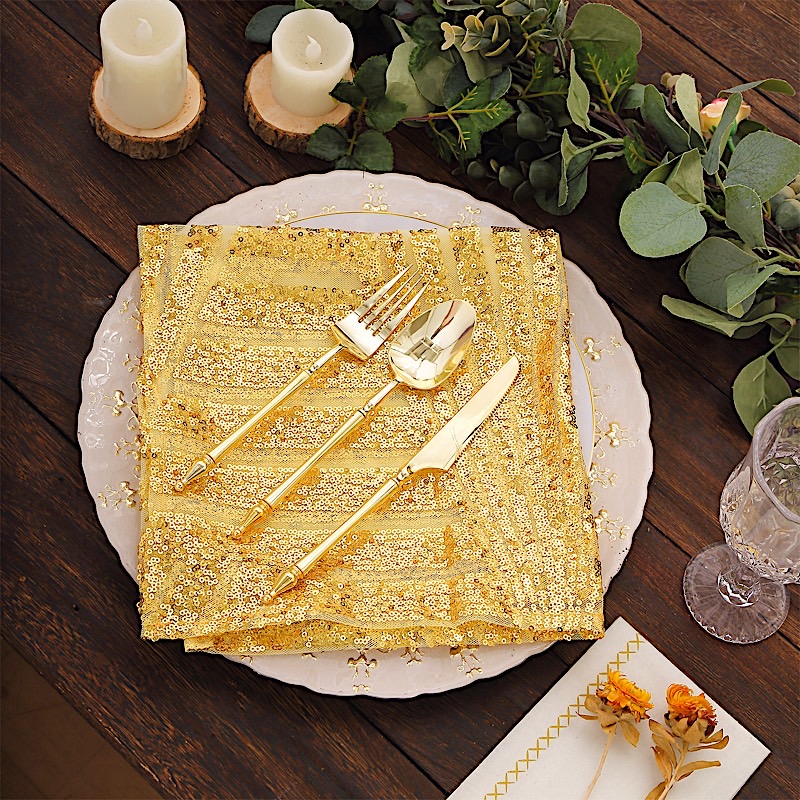 Add style to your party and accessorize your tables with dazzling dinner cloth napkins! Artfully display them on your tabletops to set a welcoming ambiance for your guests. The combination of high quality tulle net fabric and sequins will elevate your tabletop decor and create the perfect ambiance for your special occasions. Whether for family dinners, get-togethers, weddings or any special events, these sparkling dinner napkins are just the perfect accents for your party tables.