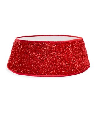 Finish decorating the tree with this hard-sided tree collar styled with fun red sequins.