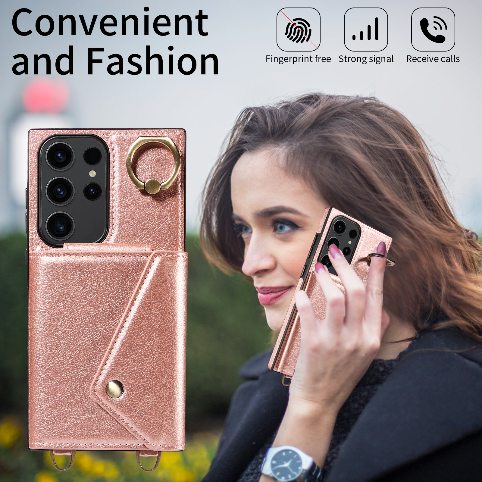 【Ring kickstand design】This folio card holder case wallet is convenient! Its kickstand ring holder can rotates 360°rotation, allowing you to relax and watch movies without using your hands. Wave goodbye to the arm strain caused by holding your cell phone or watching videos for extended periods.