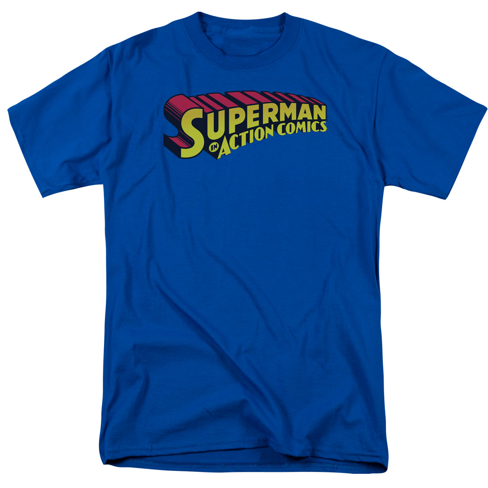 - Officially licensed DC Comics merch. Printed in the USA by the popular manufacturer Trevco. Comes in a nice royal blue color. This adult t-shirt is made out of cotton.