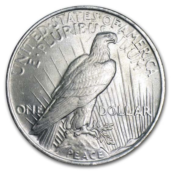 Anthony di Francisci's Peace Dollar was the result of a contest looking for a new dollar design. His unique rendition of Lady Liberty was based on the actual Statue of Liberty, resulting in a patriotic and familiar look. The eagle on the reverse clutches an olive branch in its talons, symbolizing peace and commemorating the peace seen after WWI.