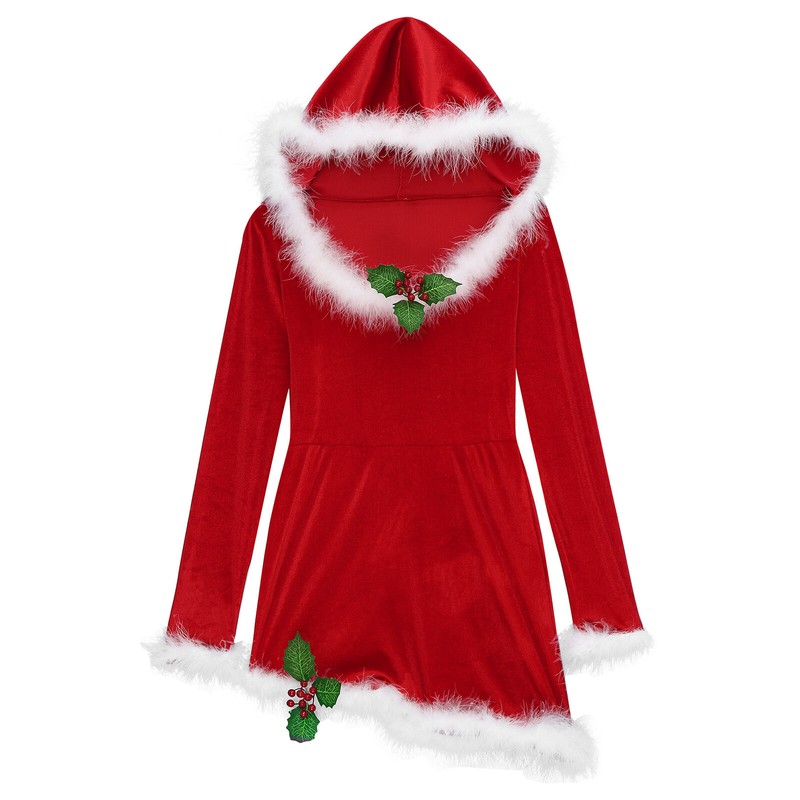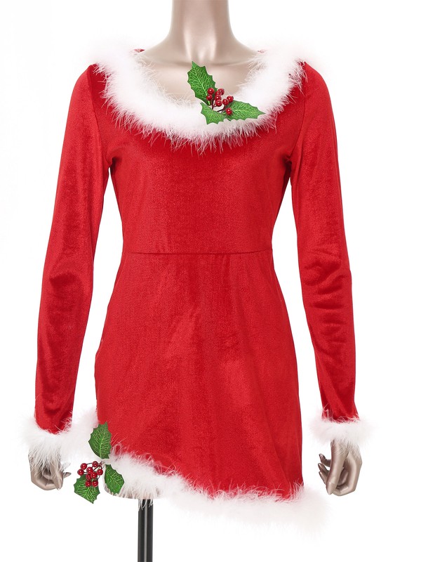 Full of Christmas elements, bright red velvet, plush feather trim, leaves and fruits of holly decoration, bring more fun and pleasant.