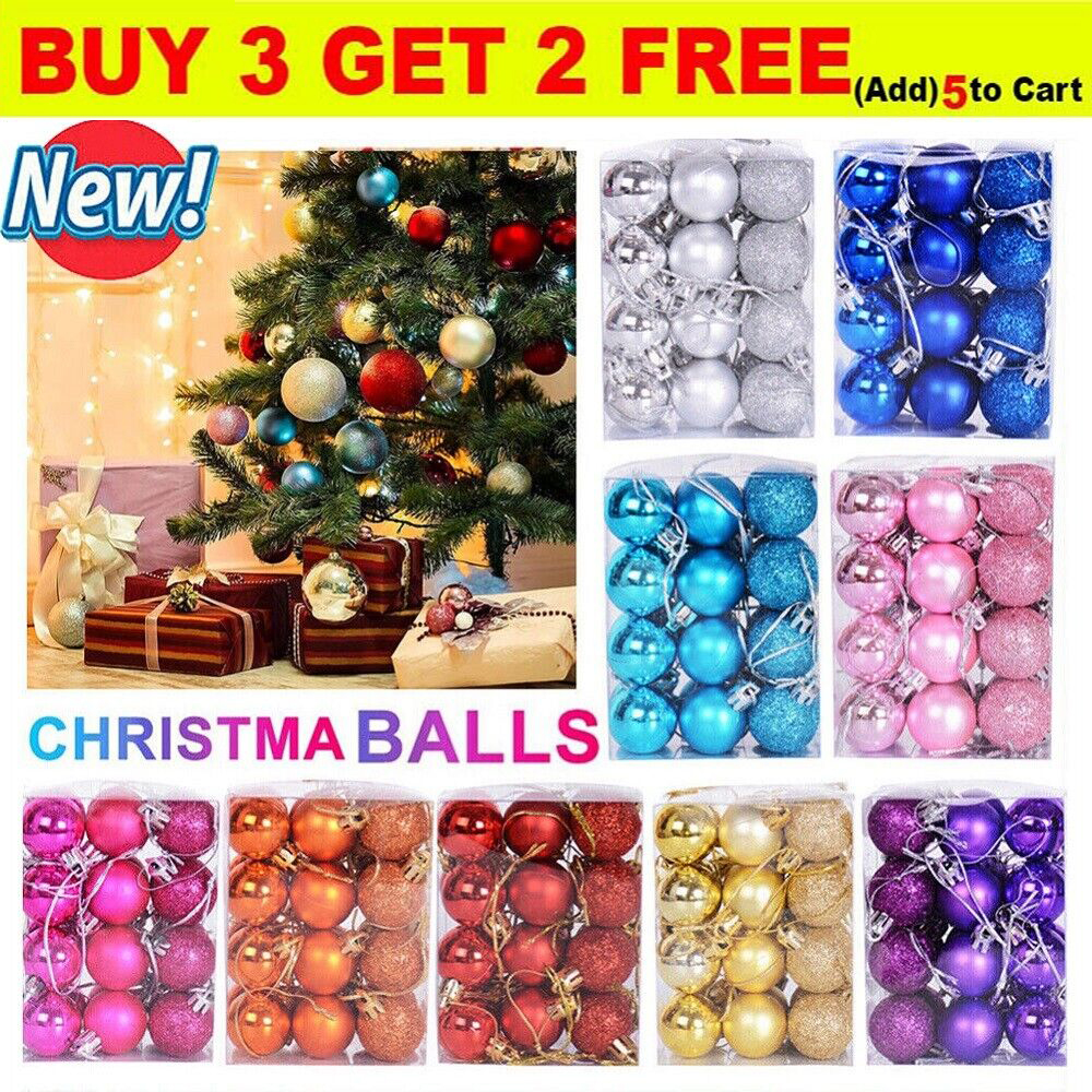 24 Pcs Christmas Baubles Ornament Balls with box Halloween House Xmas Tree Decors
