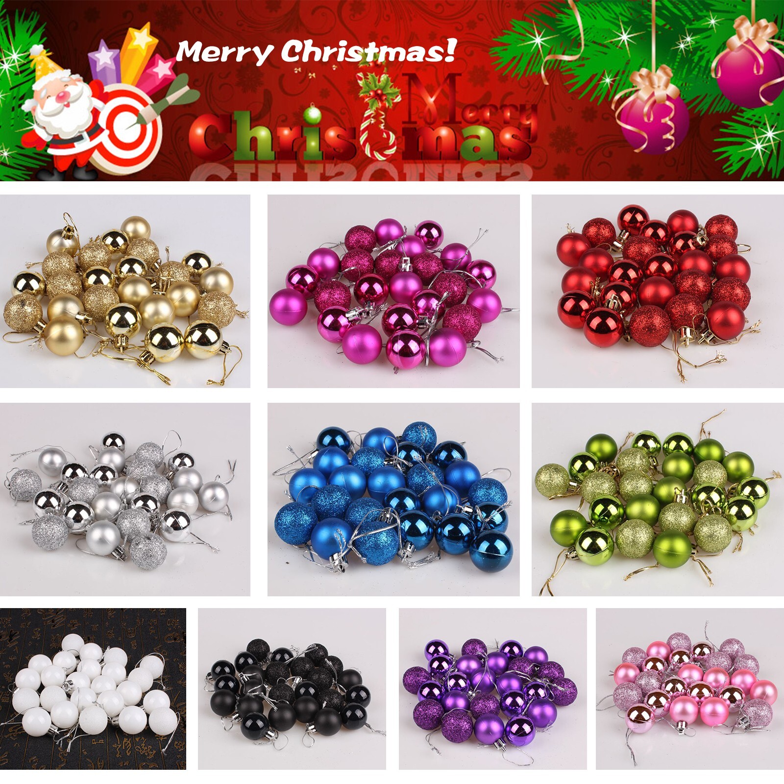 24 Pcs Christmas Baubles Ornament Balls with box Halloween House Xmas Tree Decors