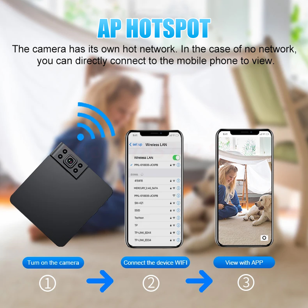 【Couldn't be smaller】- RDWIFI is 2021 latest design mini portable camera for indoor/outdoor. It’s small wifi camera with app. Once your iPhone or Android phone configured with router Wi-Fi (Only 2.4GHz). Then you can view live video on the App remotely from anywhere in the world. Keep an eye on your home or office as a security camera