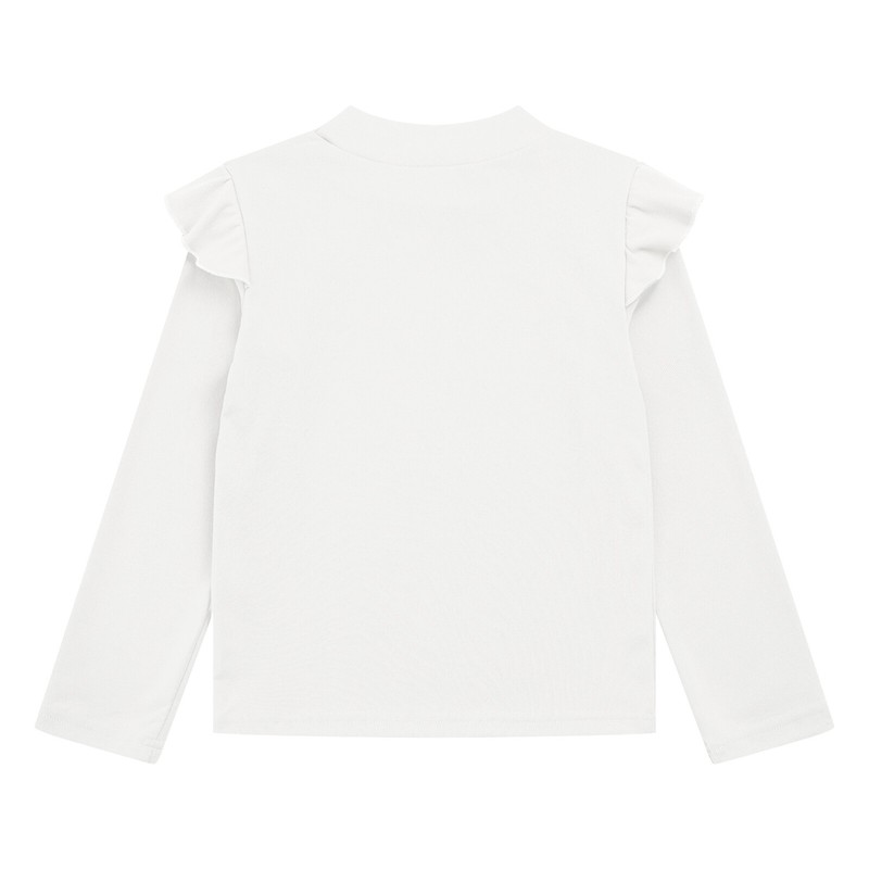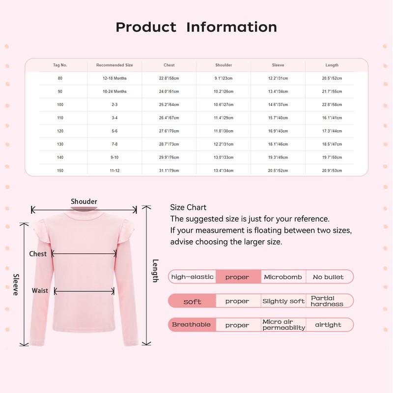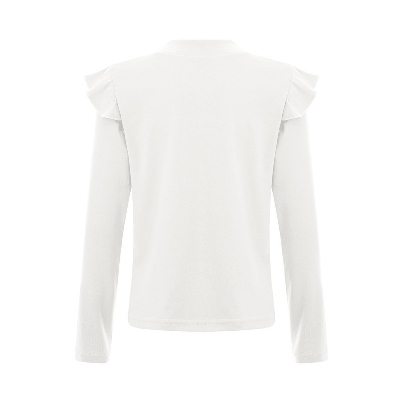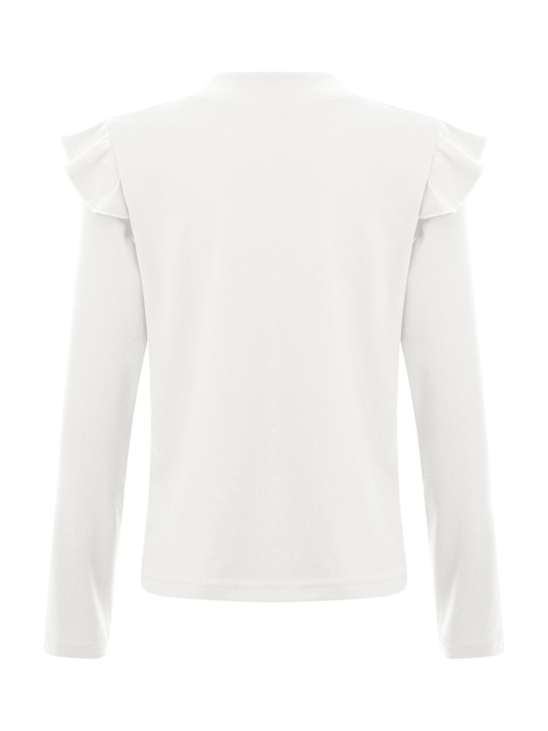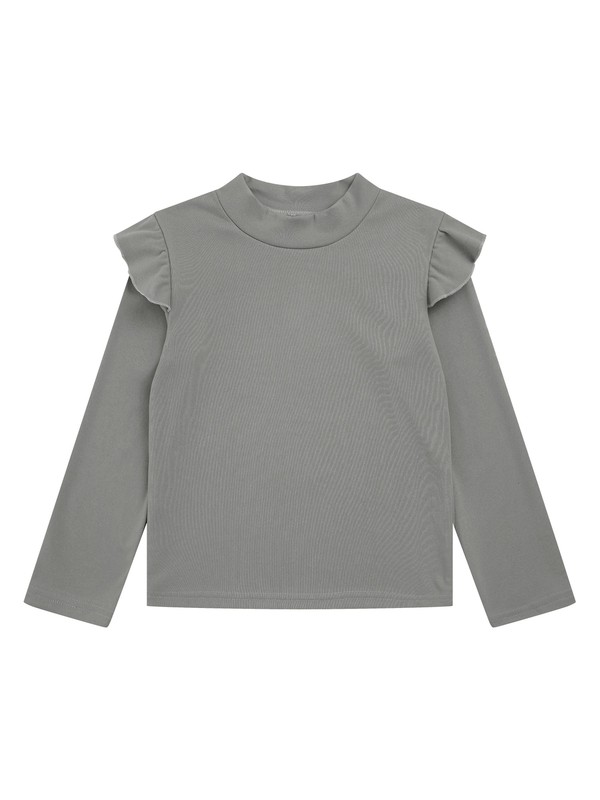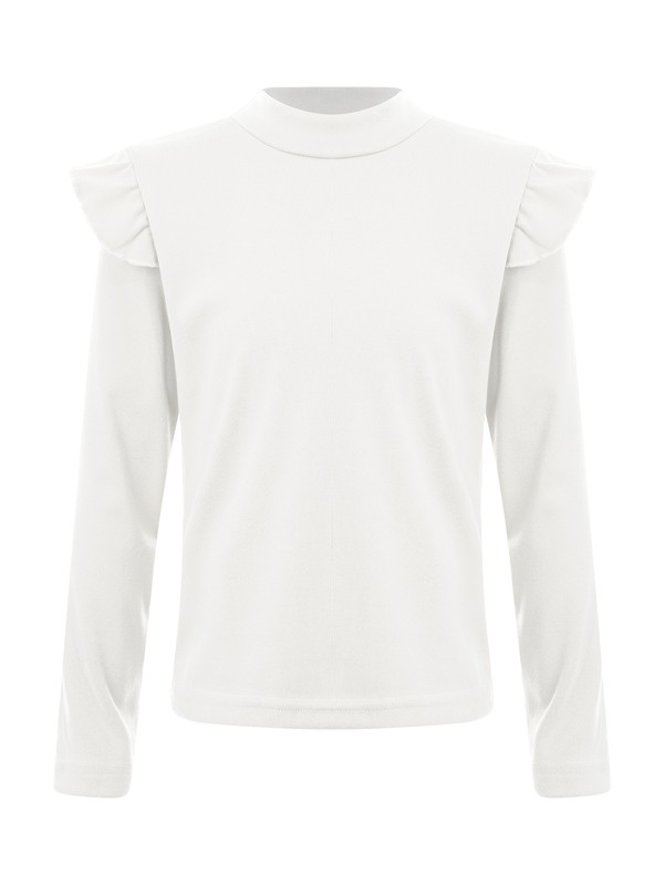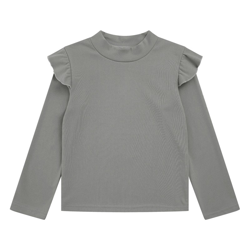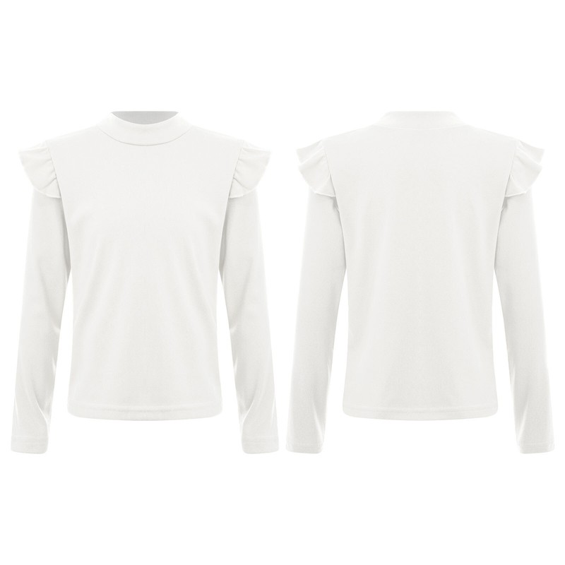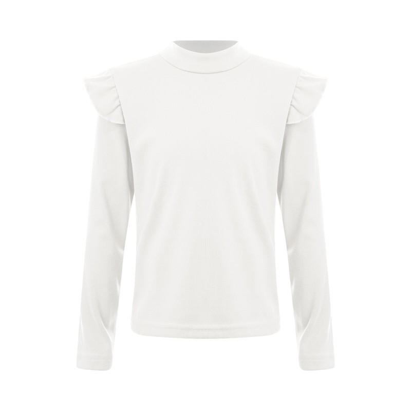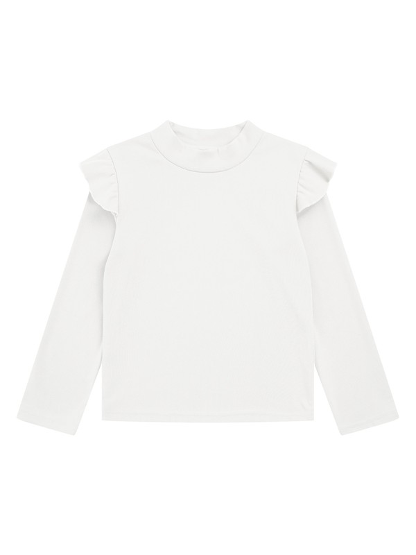Mock neck long sleeve T-shirt thermal underwear top with ruffles on the shoulders, make your girl look cute and lovely.
