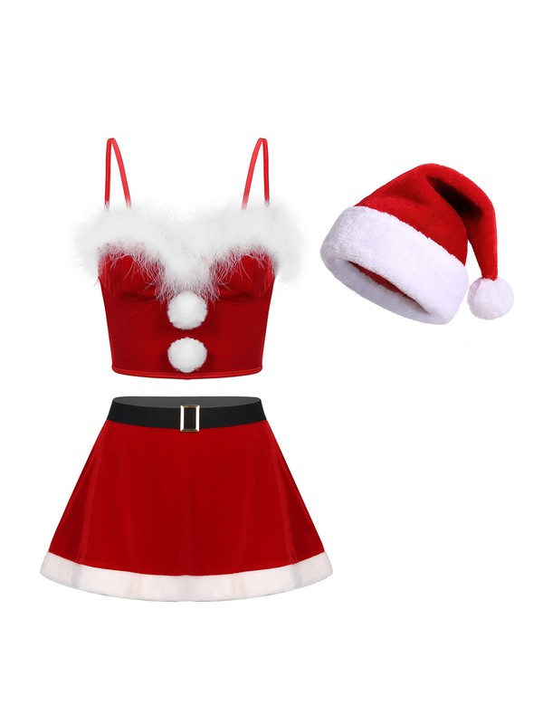 The matching Santa Claus hat has classic Christmas elements, red velvet, fluffy white brim and lovely ball on the top.