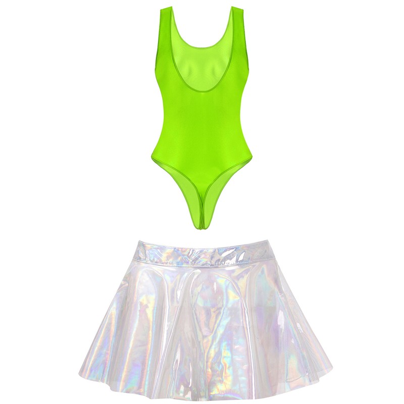 Flared skirt with a shiny sheen, transparent, high waist, back with zipper closure, easy to put on and take off.