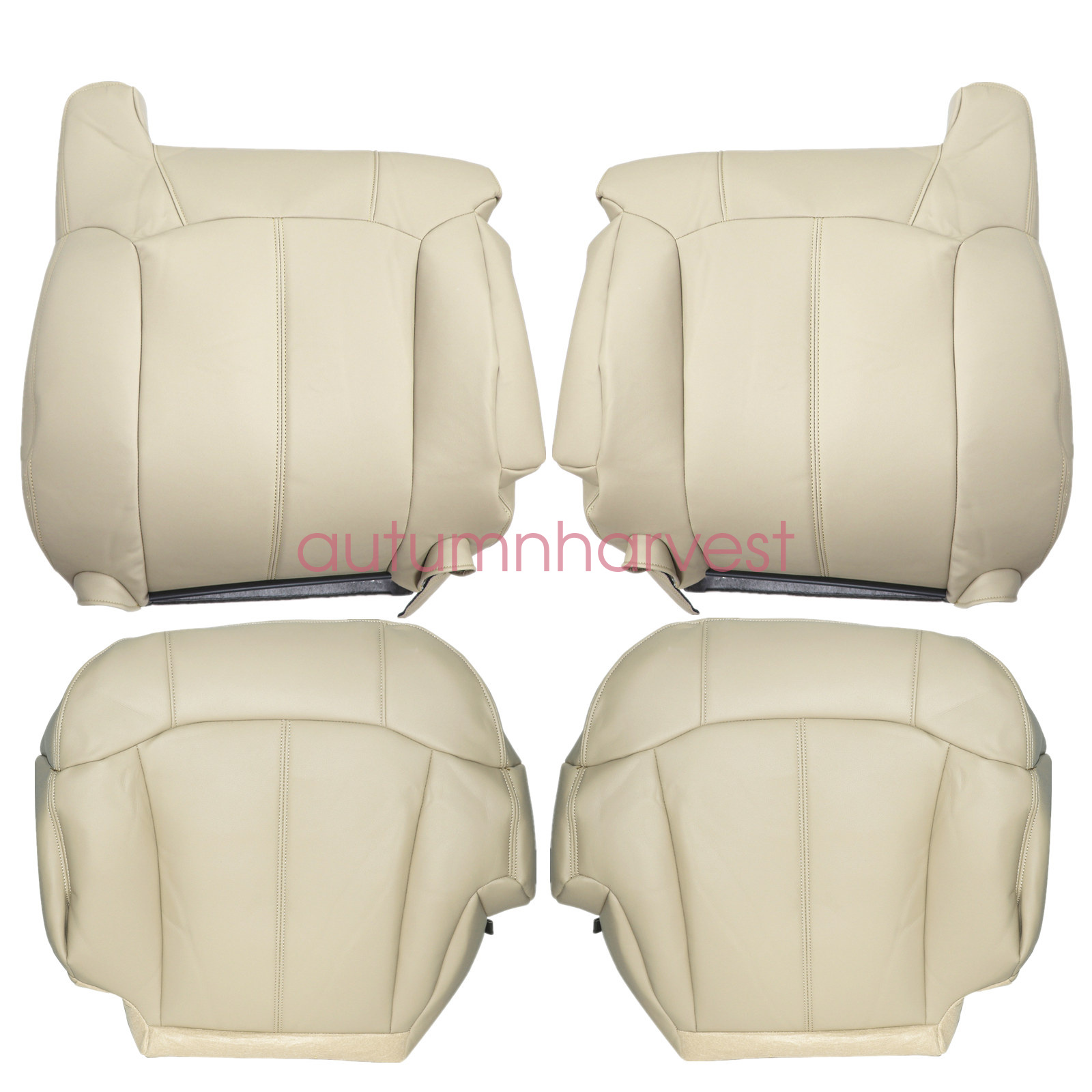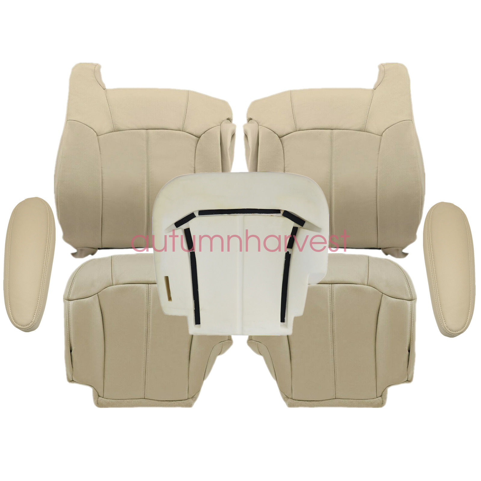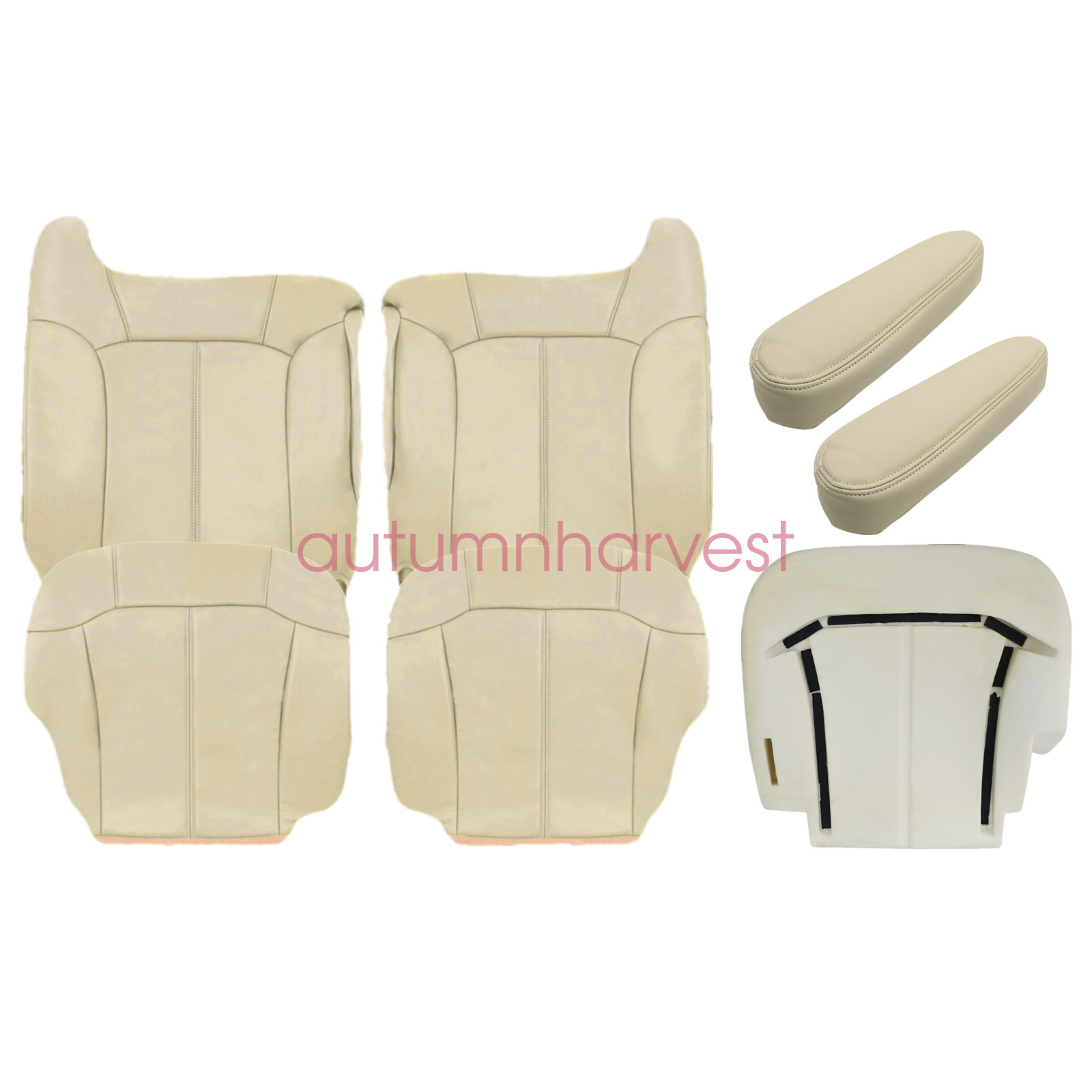 For 1999 2000 2001 2002 Chevy Tahoe Suburban 1500 2500 Driver & Passenger Replacement Leather Seat Cover & Foam Cushion & Armrest Cover Shale Tan Color Code522 or 922