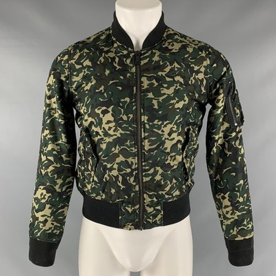 SCHOTT Size M Green Camo Polyester Bomber Jacket IN-STORE ID: 127043SCHOTT Jacket bombers W featuring a camouflage print, mandarin ribbed collar, flap pickets, and zipper up closure. Original Retail Price (if known): $0.00 Category: Jacket More Details Brand: SCHOTT Chest Size: M Size: M Gender: Male Color: Green Pattern: Camo Fabric: Polyester Lining Material: Polyester Style: Bomber Country of Origin: United States Age Group: Adult