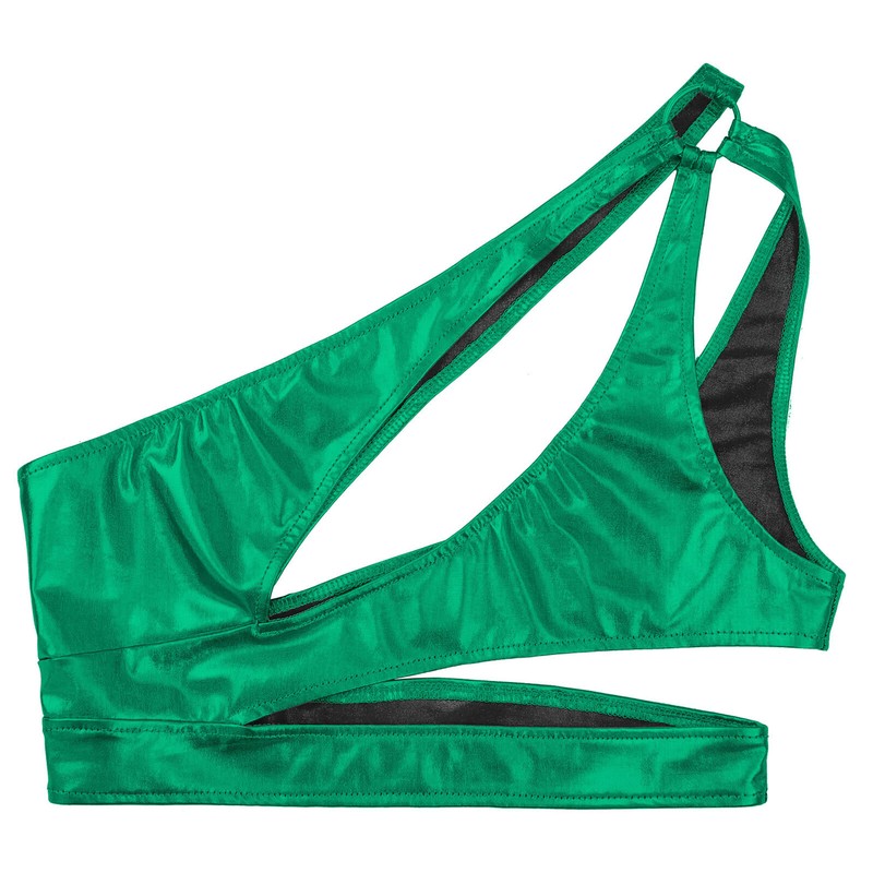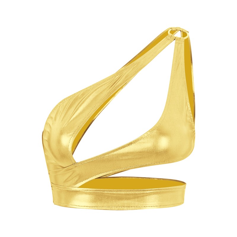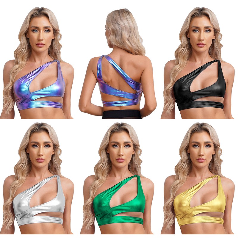 Designed with one shoulder with O-ring connected, sleeveless, cutout and slim fit, crop top makes you sexy and charming.