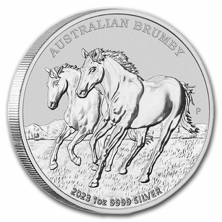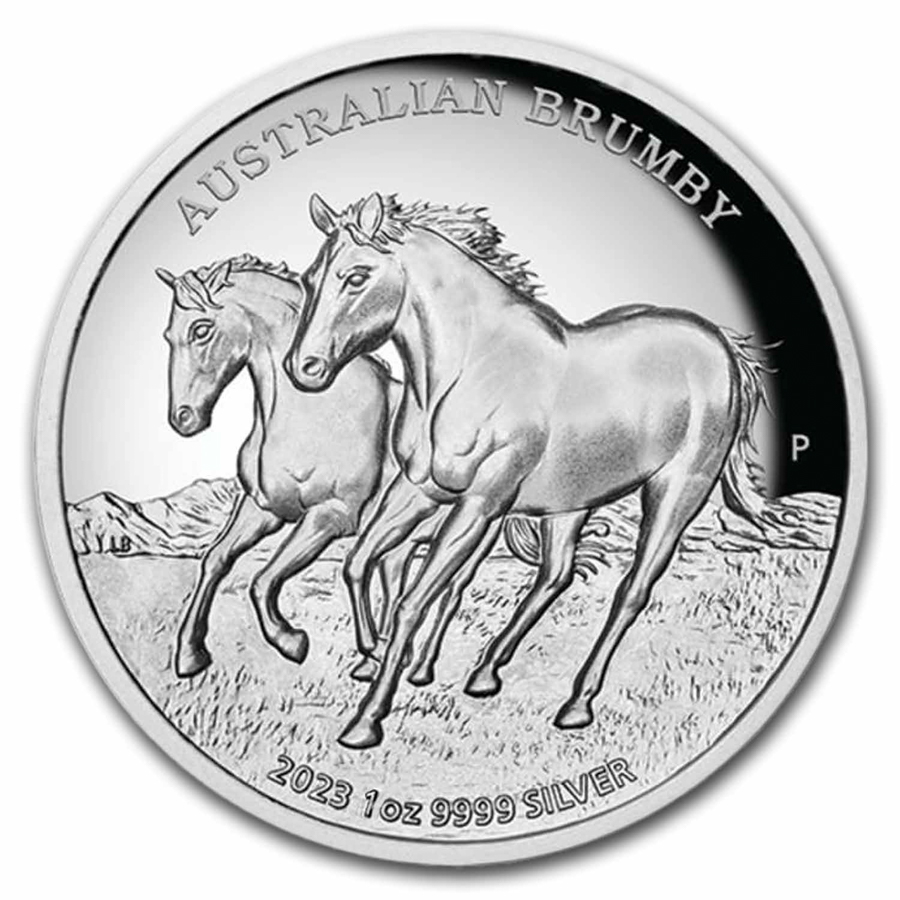 Australian Silver BrumbyA brumby is the Australian term for a wild horse that is free-roaming, typically found in the Australian Alps region. A group of brumbies is known as a mob or a band. The horses are descendants of escaped or lost horses dating back to early European settlers. The Perth Mint released a silver Brilliant Uncirculated coin in 2020, and now has a new release for 2023.