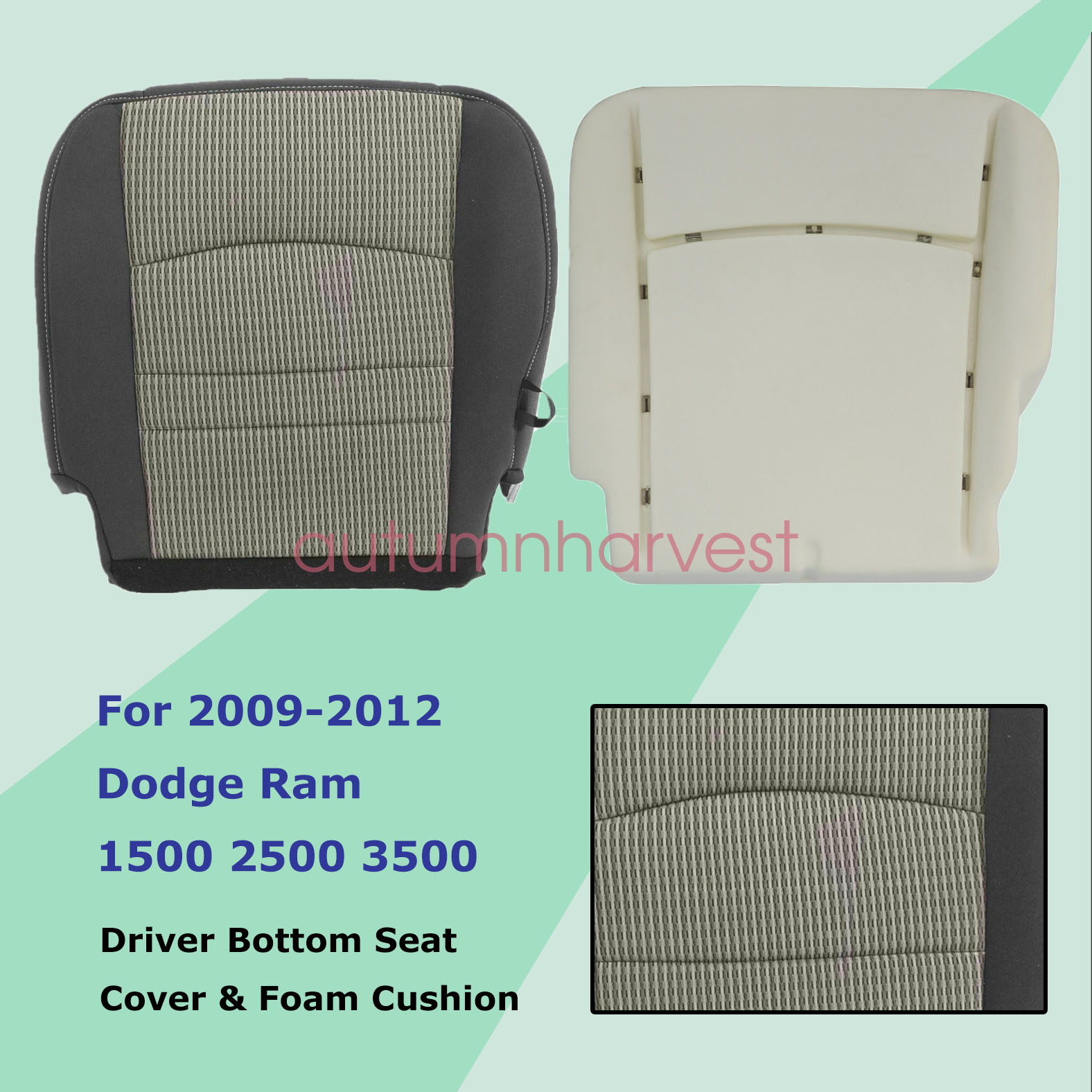 Driver Bottom Cloth Seat Cover & Foam Cushion For 2009-2012 Dodge Ram 1500 2500 3500 4500 5500