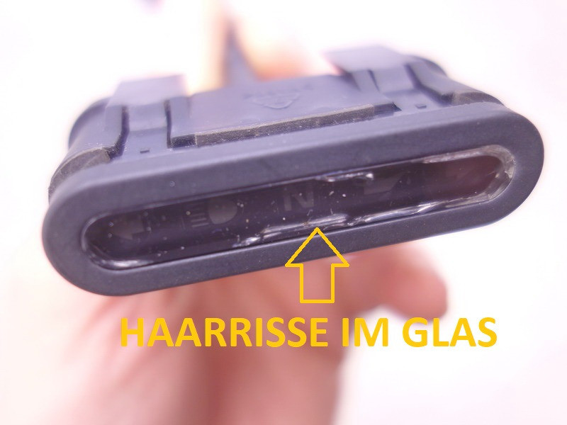 Im Sichtfenster sind mehrere Haarrisse vorhanden.