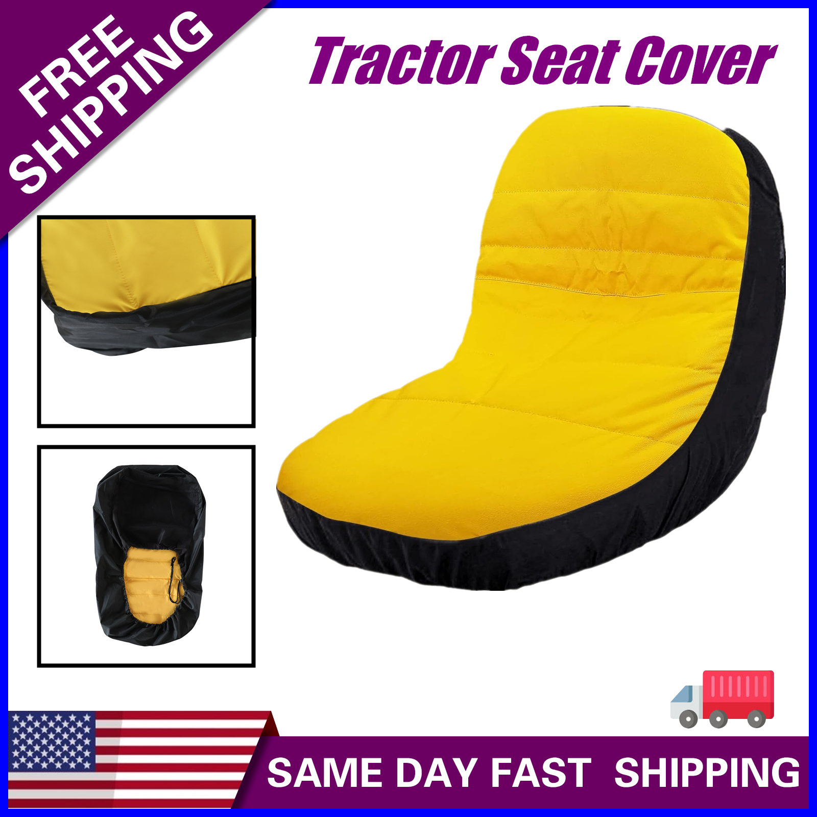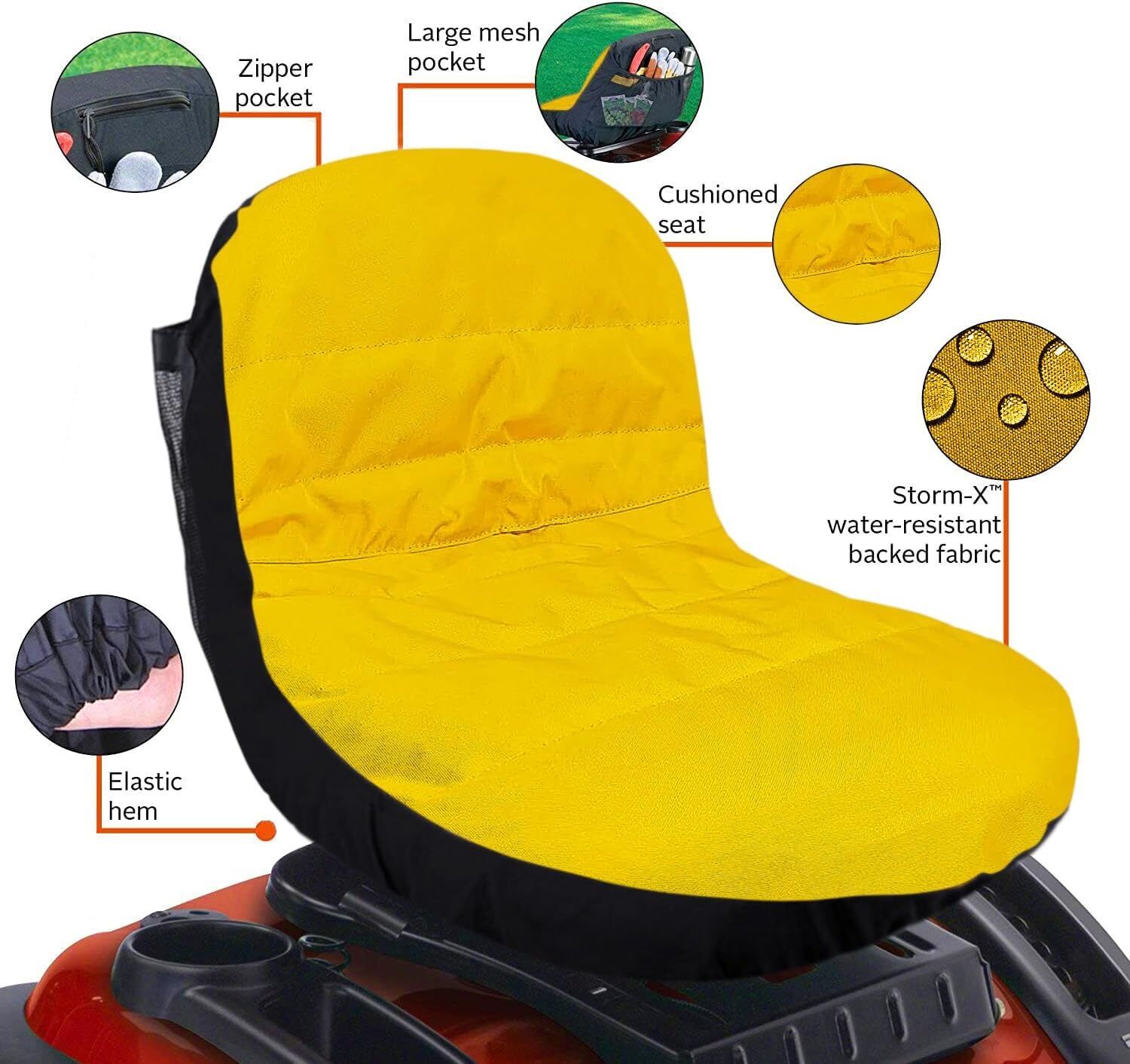 For John Deere, Kubota, Cadet, Husqvarna Riding Lawn Mower Tractor Waterproof Seat Cover Yellow & Black 15inch High Back