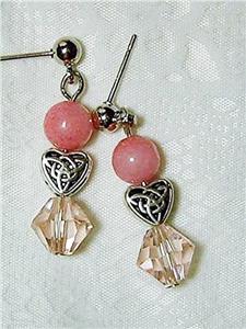CYNTHIA LYNN "FIRST LOVE" PINK MORGANITE & GLASS CRYSTAL SILVER HEART EARRINGS