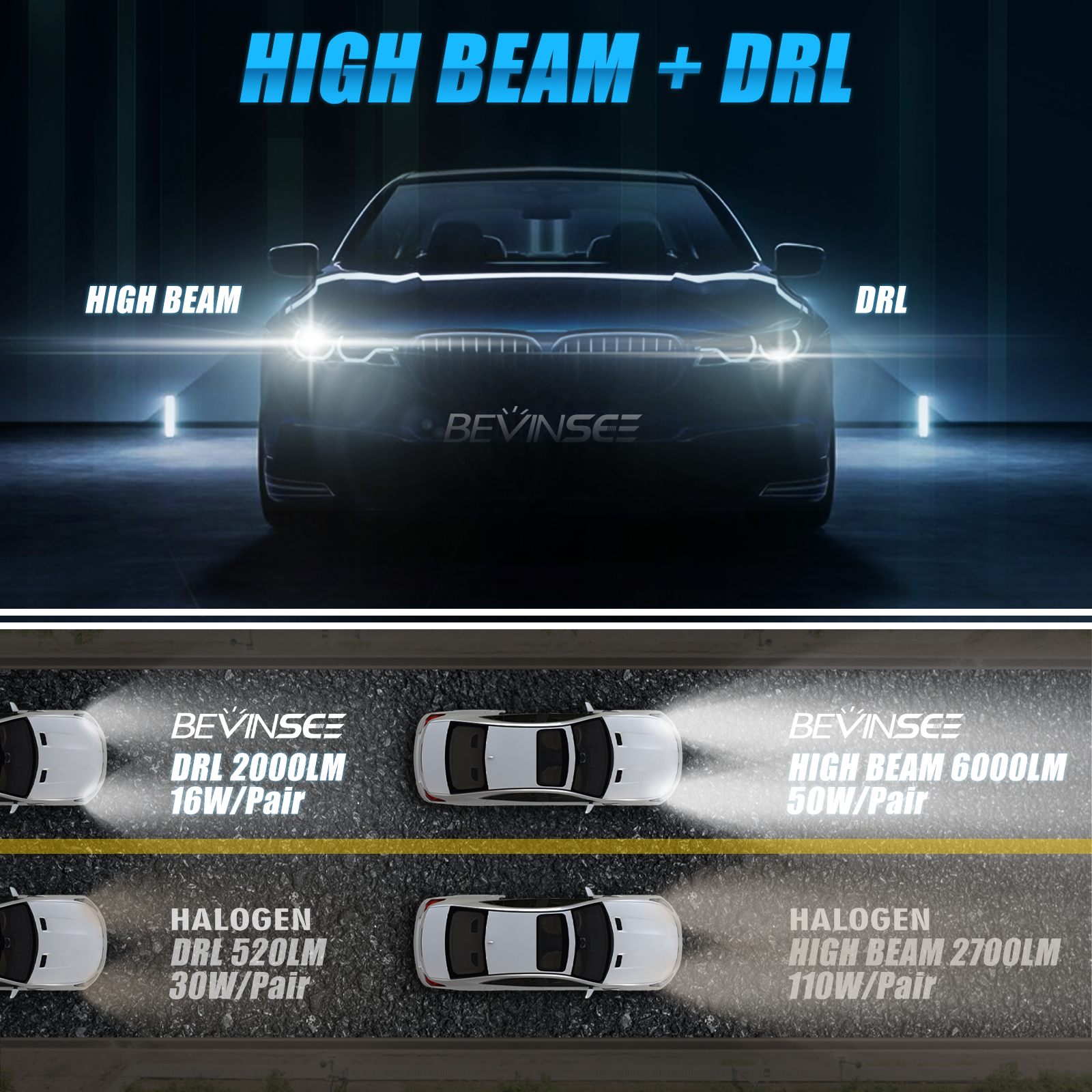 Power: High beam: 50W/Pair DRL: 16W/Pair